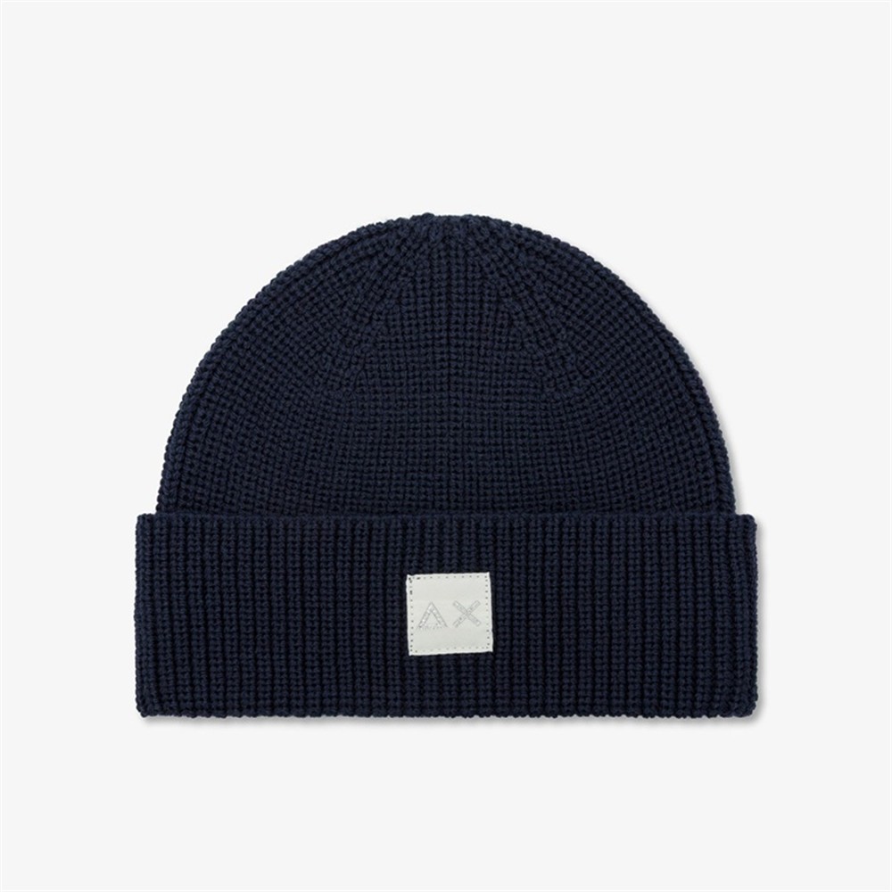 Berretto beanie in misto lana con logo NAVY BLUE