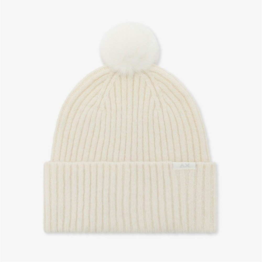Berretto beanie in lana con pon-pon BIANCO PANNA