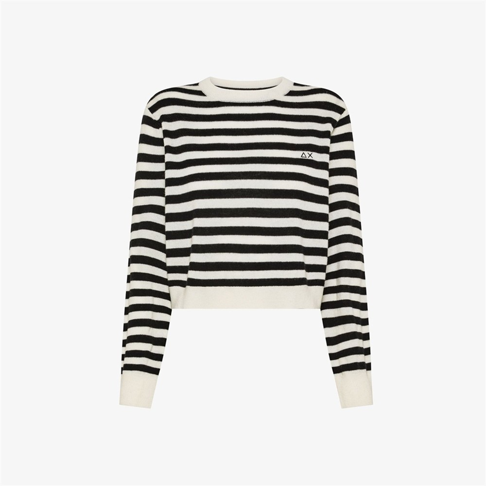 Maglioncino a righe in lana e cashmere BIANCO PANNA/NERO