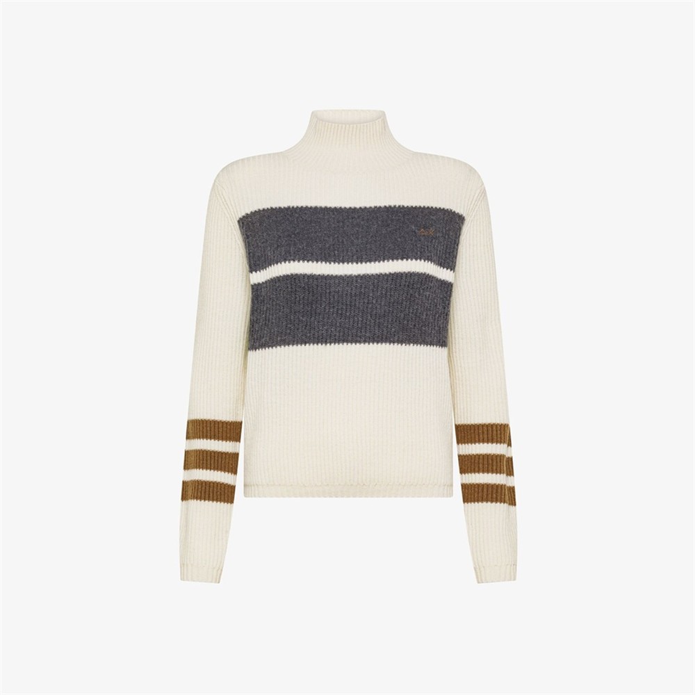 Maglioncino dolcevita in lana e alpaca a coste BIANCO PANNA/GRIGIO SCURO