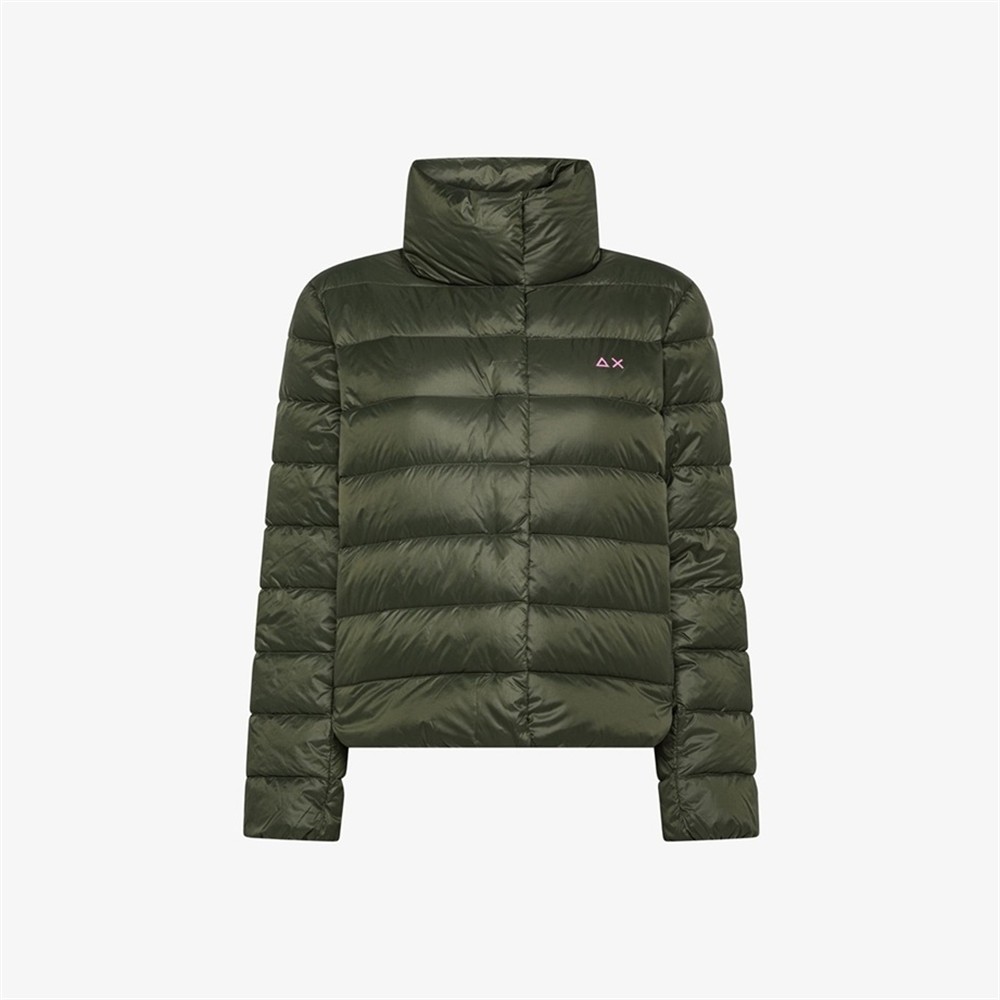 Piumino in nylon trapuntato con collo alto MILITARE SCURO