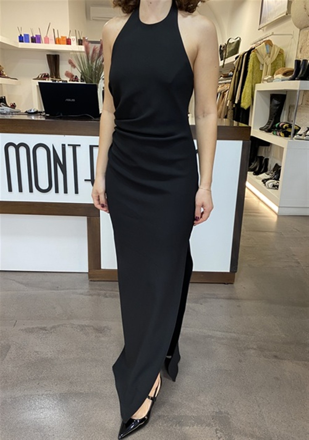 EFW25216 Abito lungo con scollo allamericana drappeggio e spacco laterale