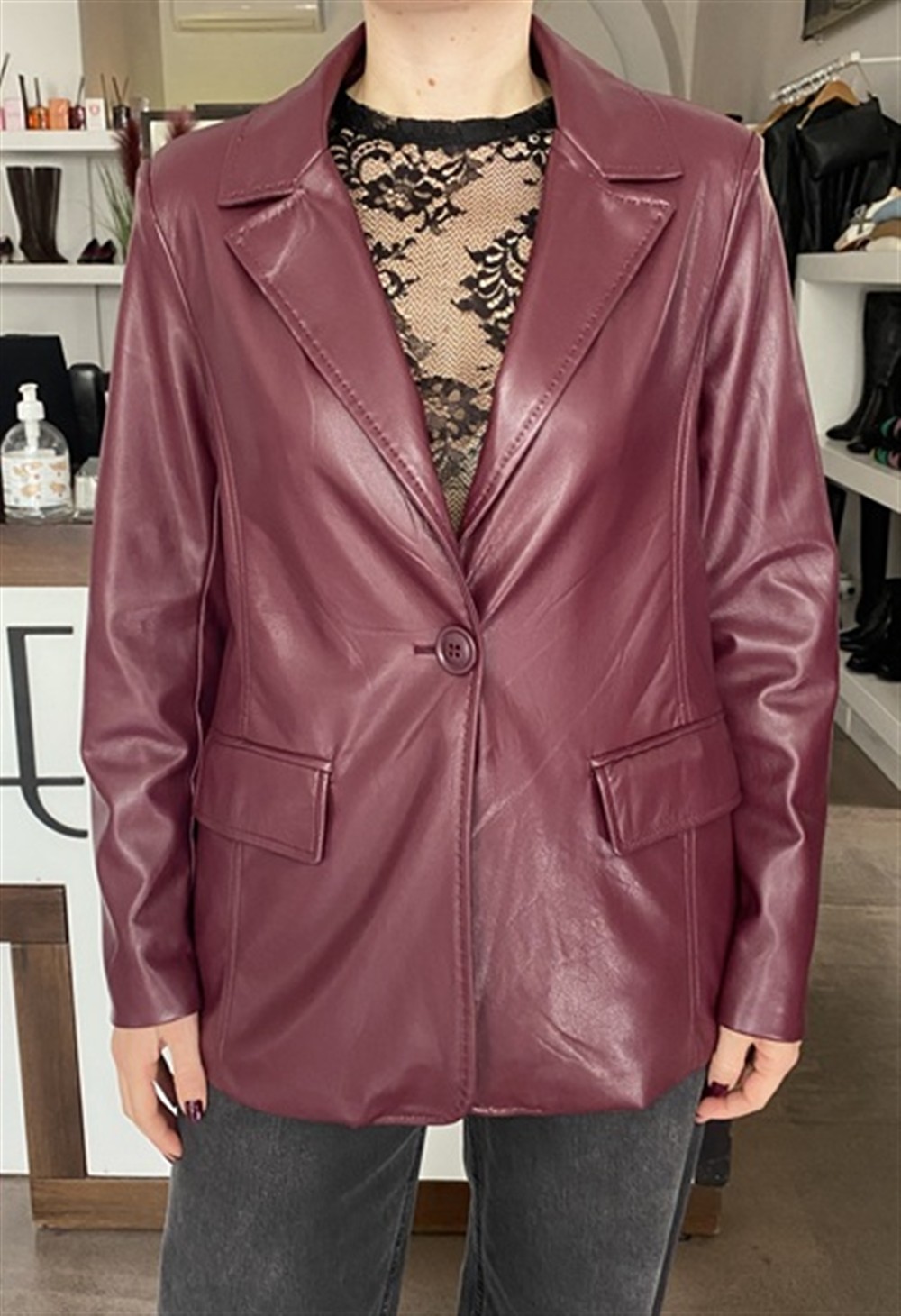 Giacca monopetto in ecopelle