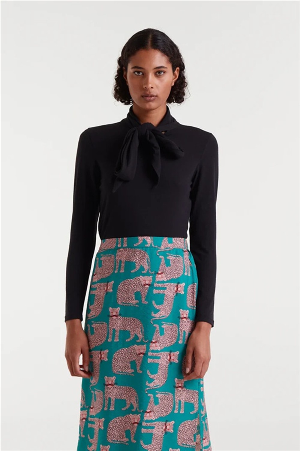 Maglia a manica lunga con lembi frontali da annodare NERO