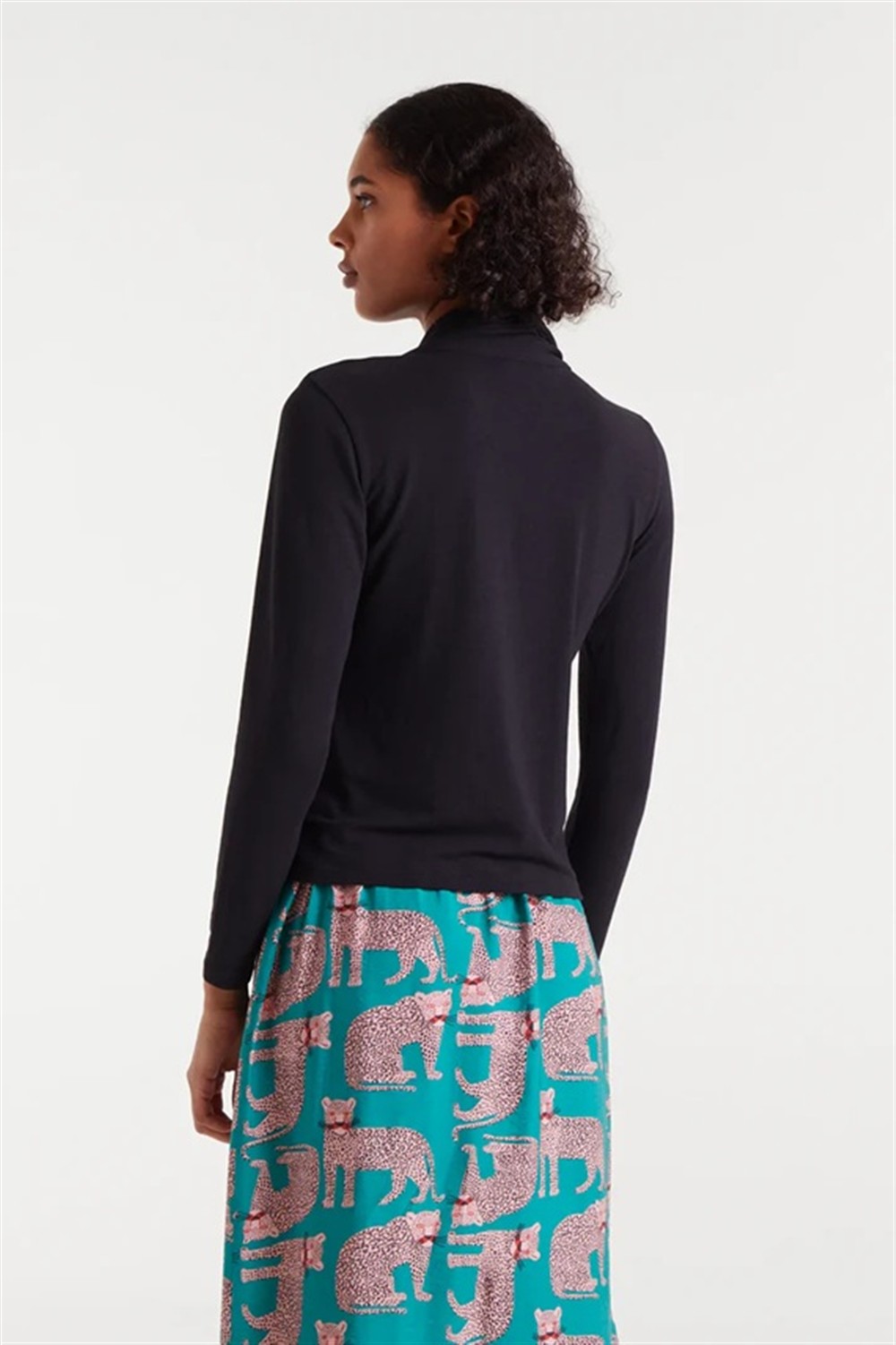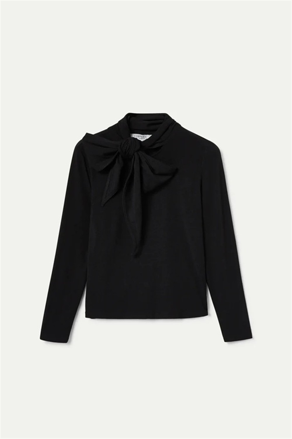 54C11116 NERO Maglia a manica lunga con lembi frontali da annodare