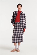 54C11156 Gonna midi stampa check con elastico sul retro del cinto e spacco posteriore