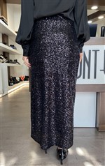 GALIMIO NERO Gonna lunga in paillettes con drappeggio e spacco