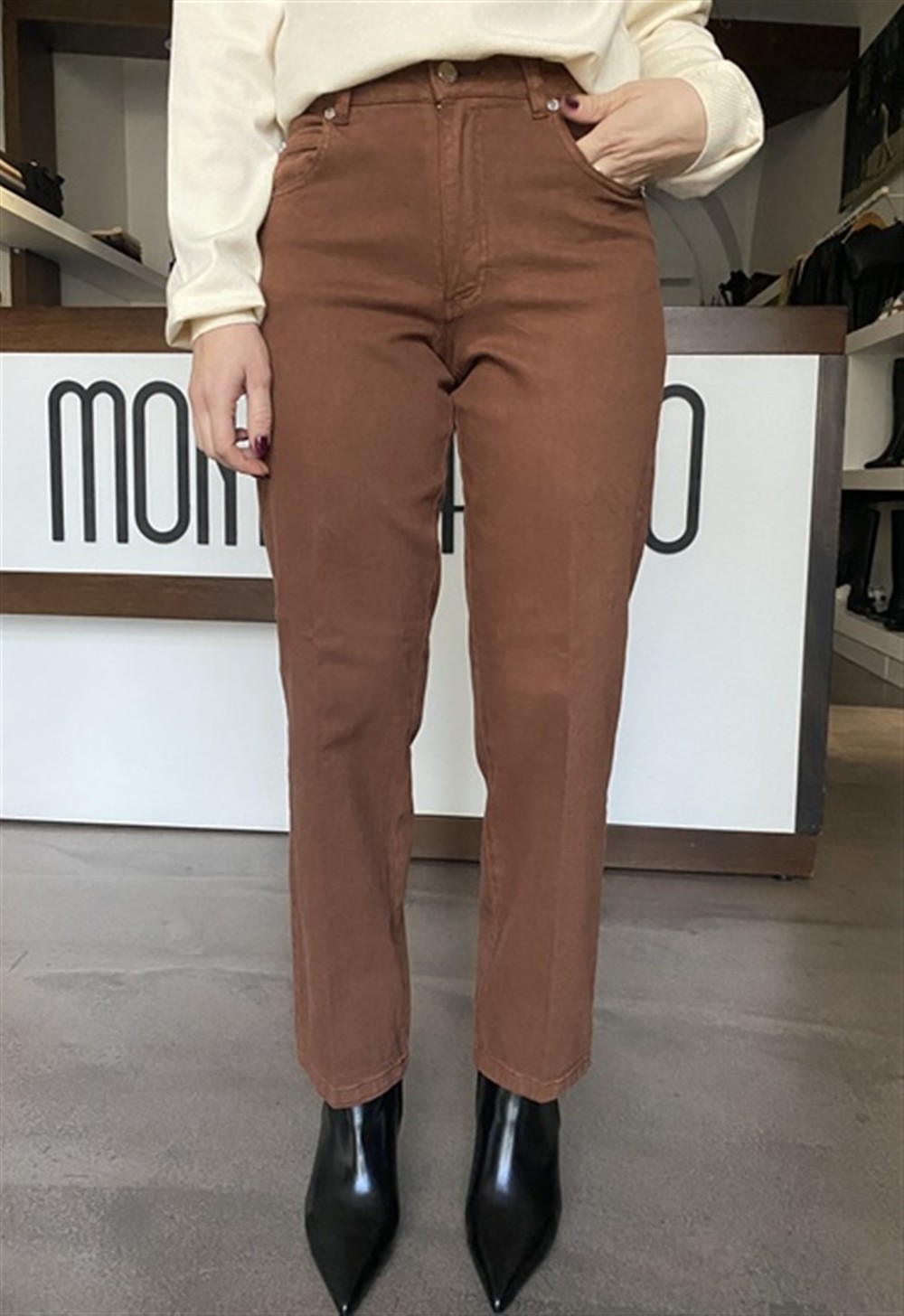 Pantalone in bull denim gamba dritta 5 tasche BROWN