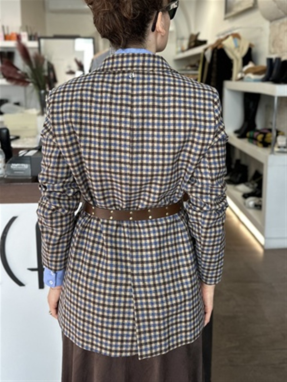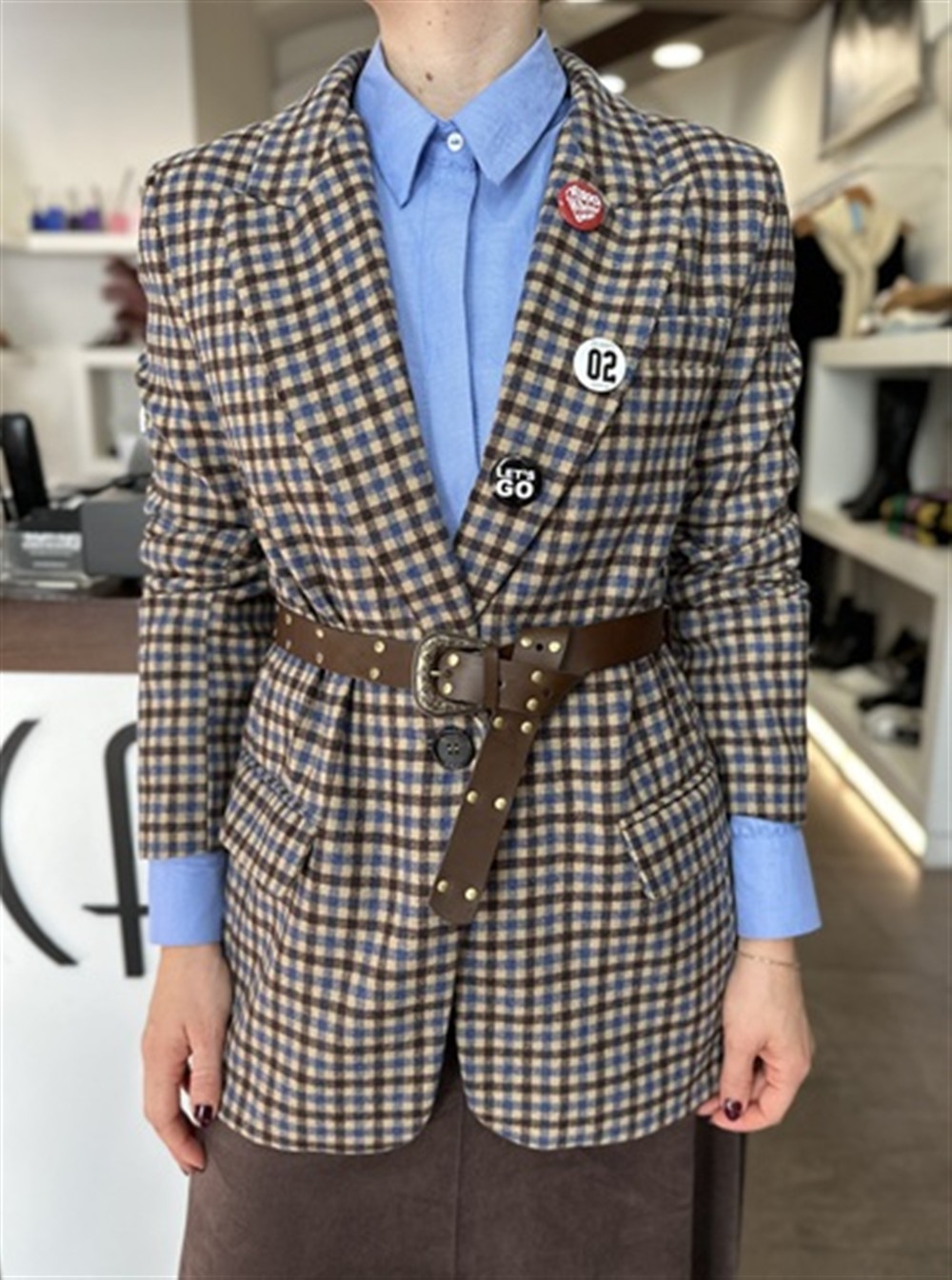 JDMBYOFCP Giacca in vichy con spille e cintura