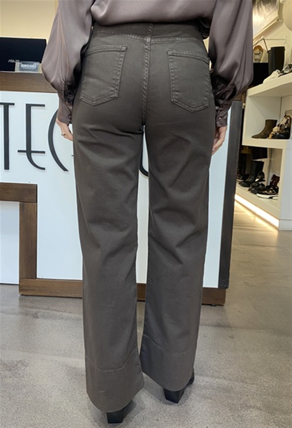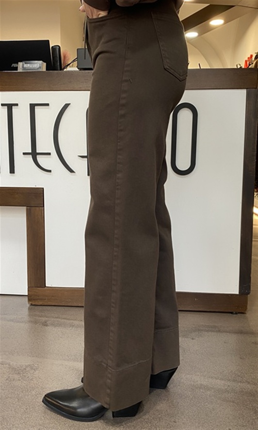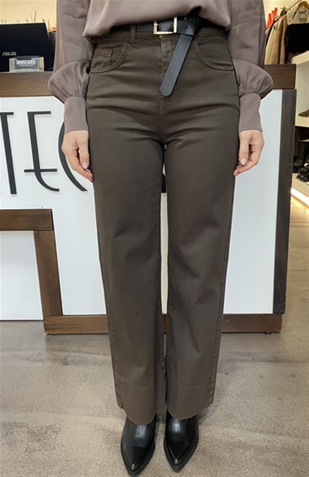 Pantalone gamba dritta in bull denim con cintura