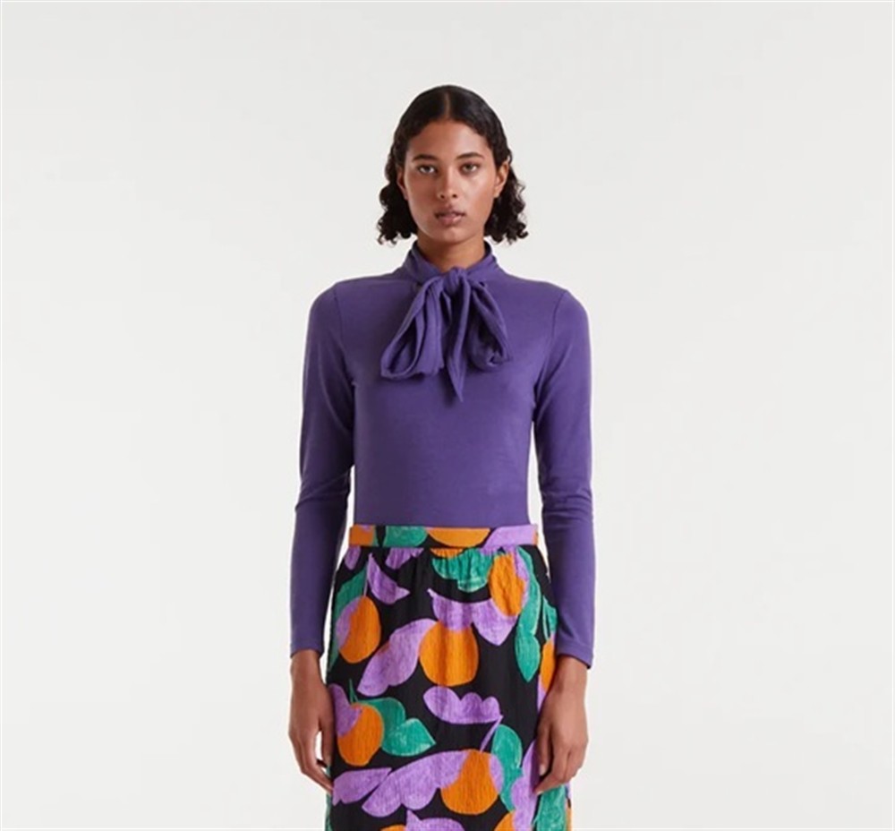 Maglia a manica lunga con lembi frontali da annodare VIOLA