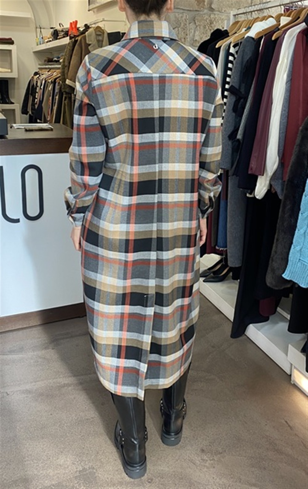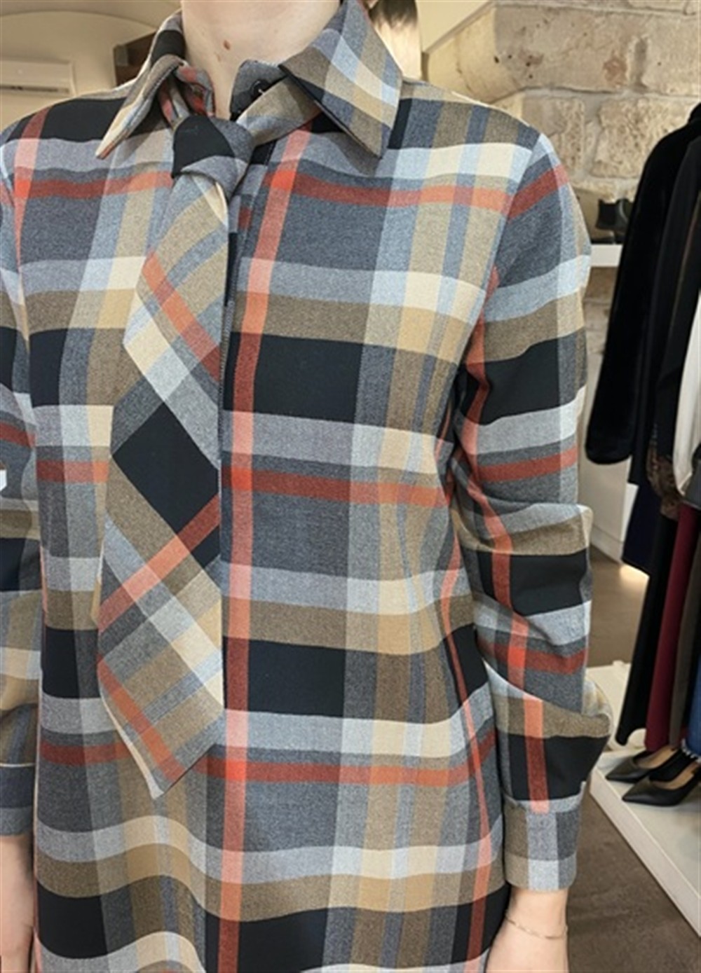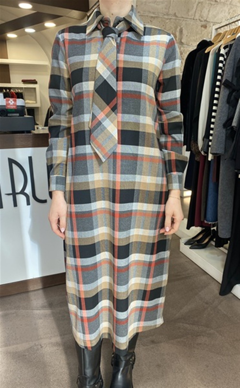 Abito lungo in tartan con cravatta inclusa