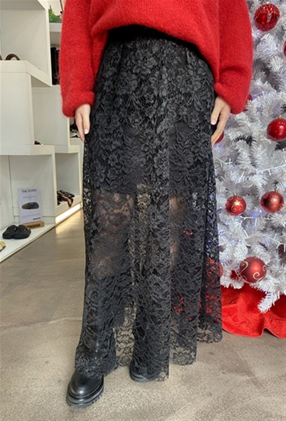 G319Y055 Gonna lunga in pizzo foderata a minigonna con elastico in vita