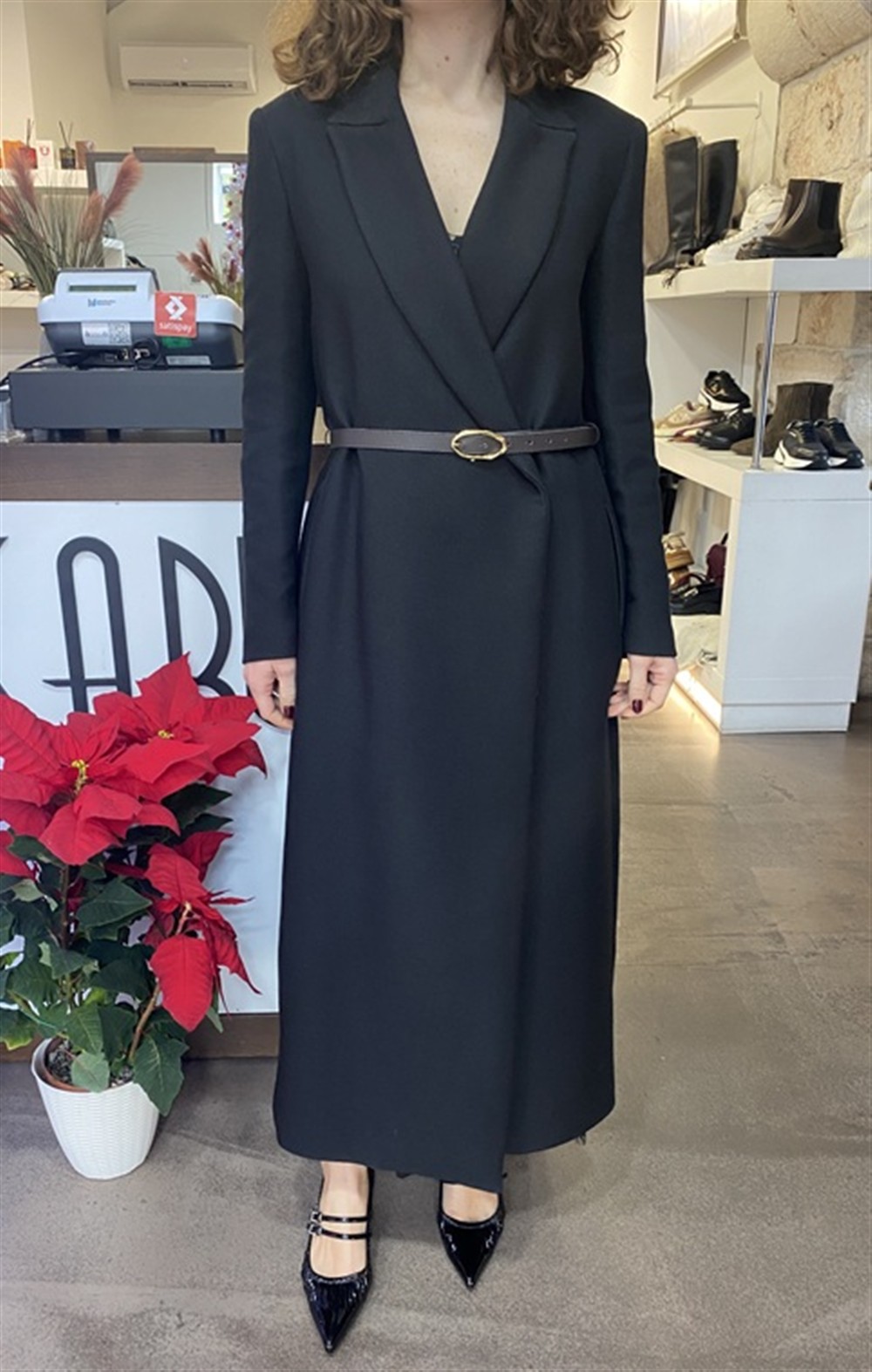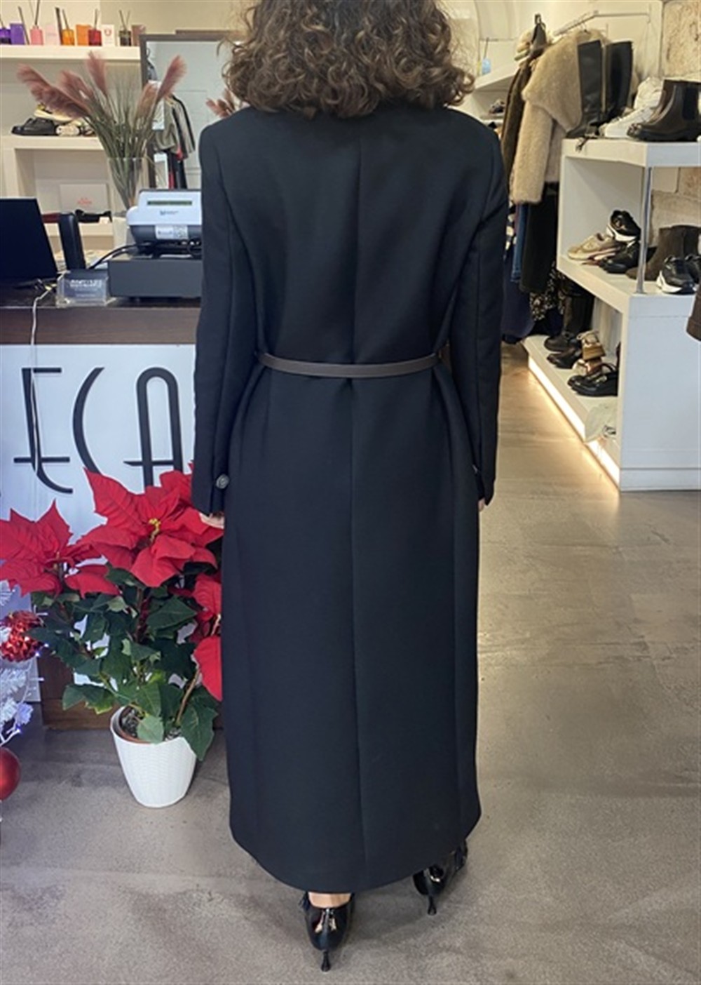 Cappotto lungo con bottone nascosto e cintina inclusa
