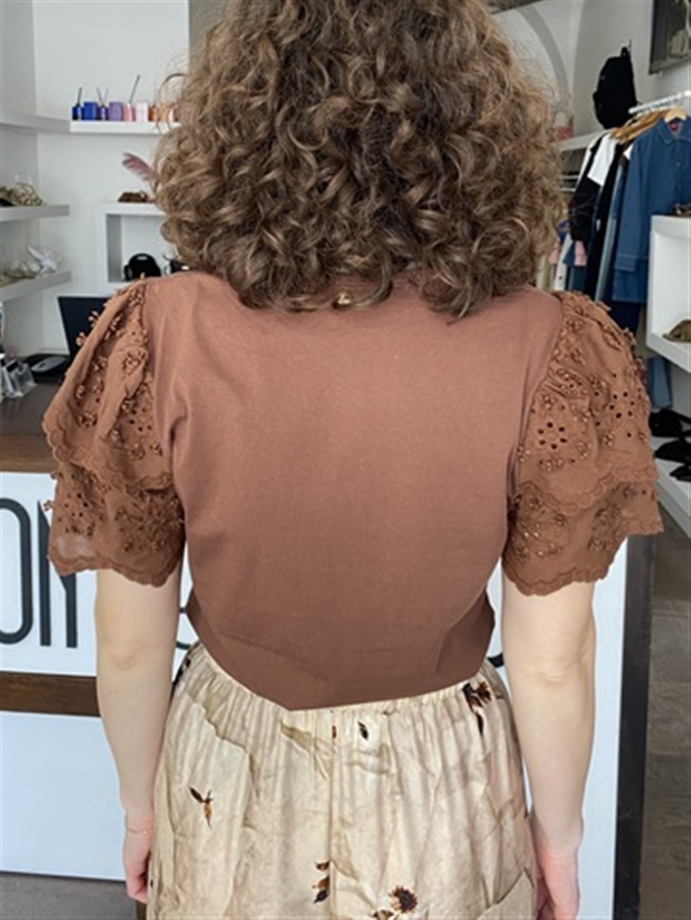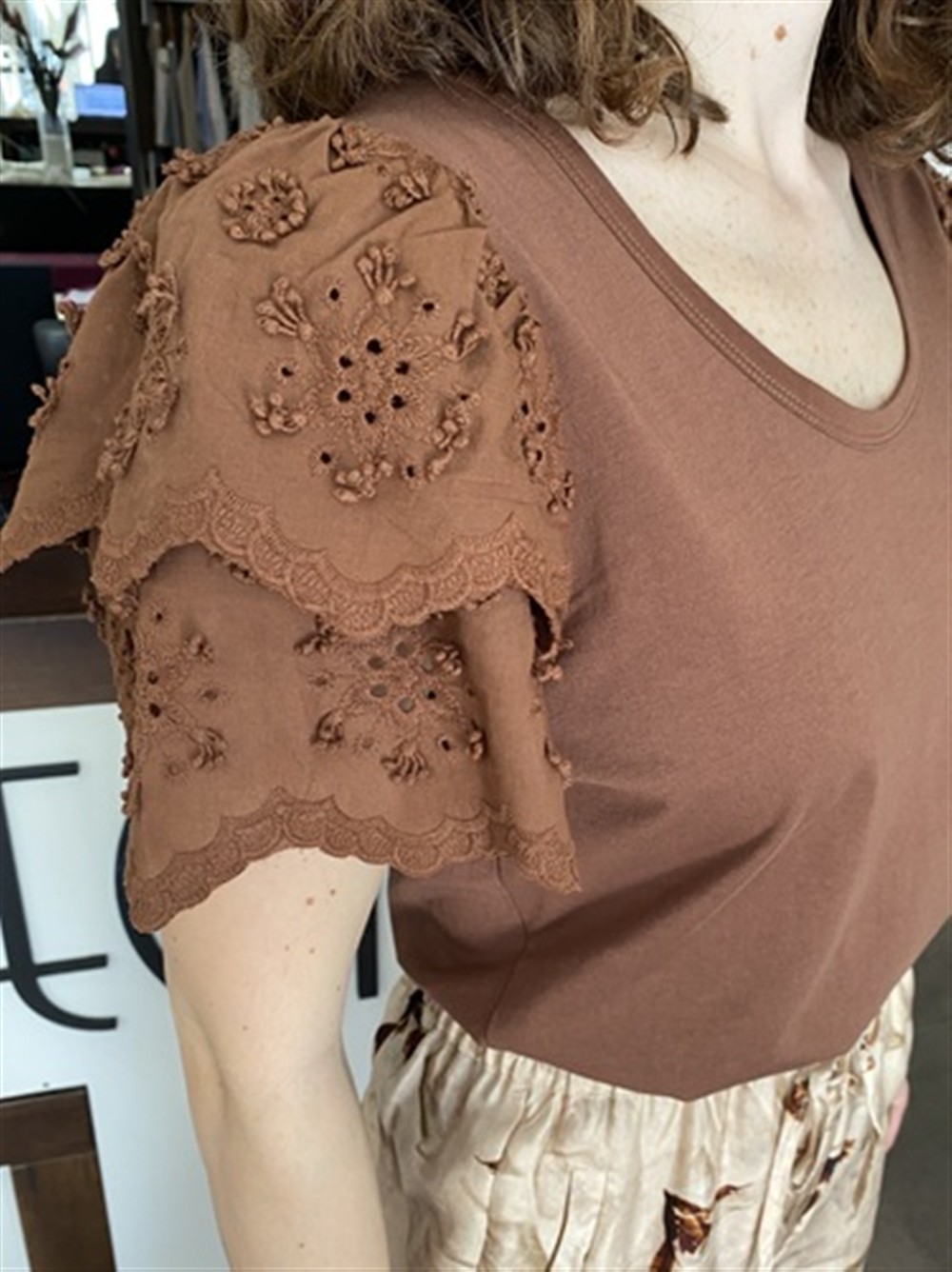 T-shirt con maniche in pizzo sangallo