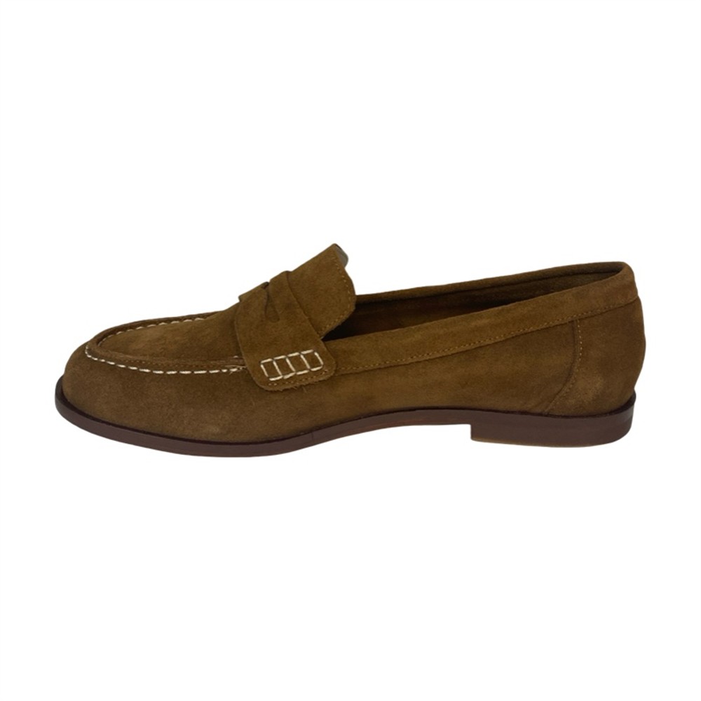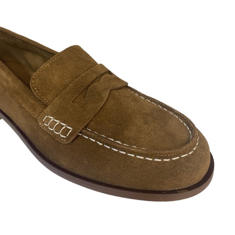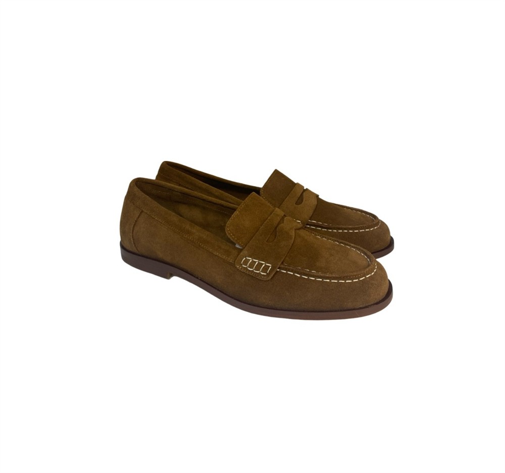 Mocassino college con cuciture a contrasto camoscio cuoio