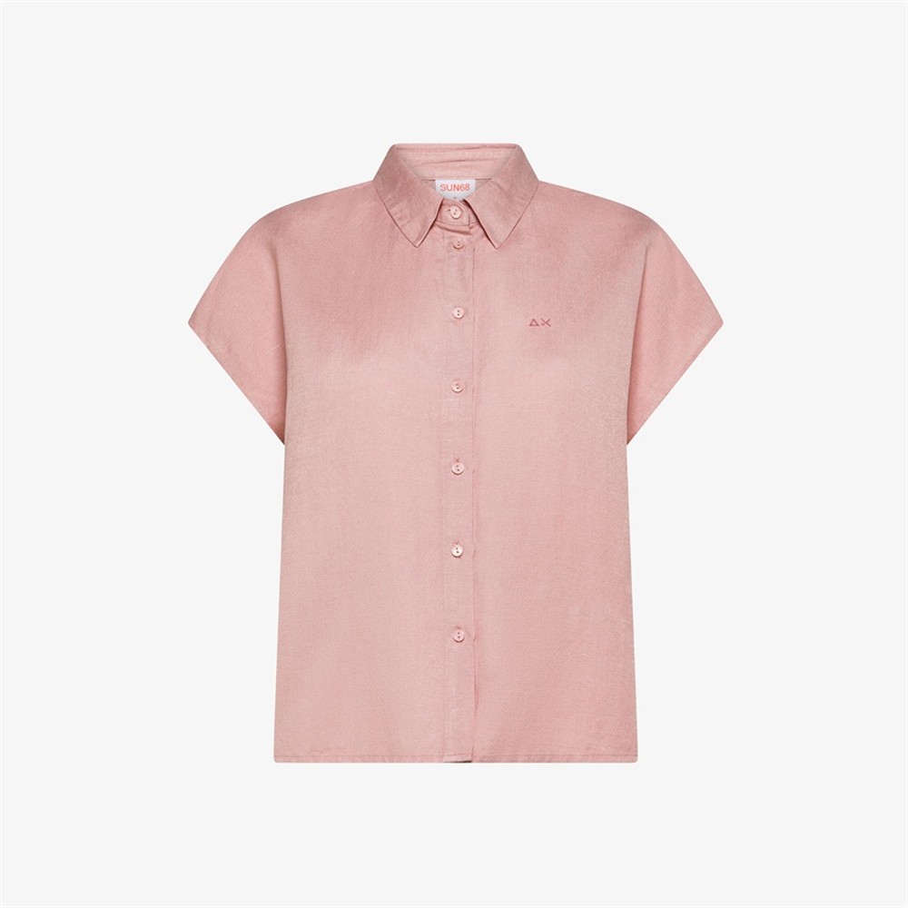 Camicia a mezza manica in lino porcellana
