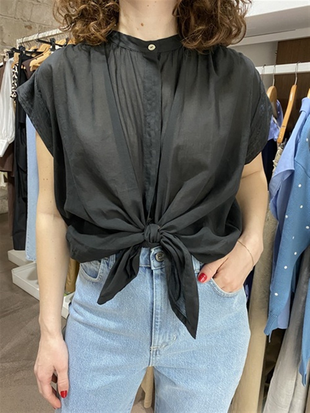 Camicia smanicata indossabile anche annodata nero