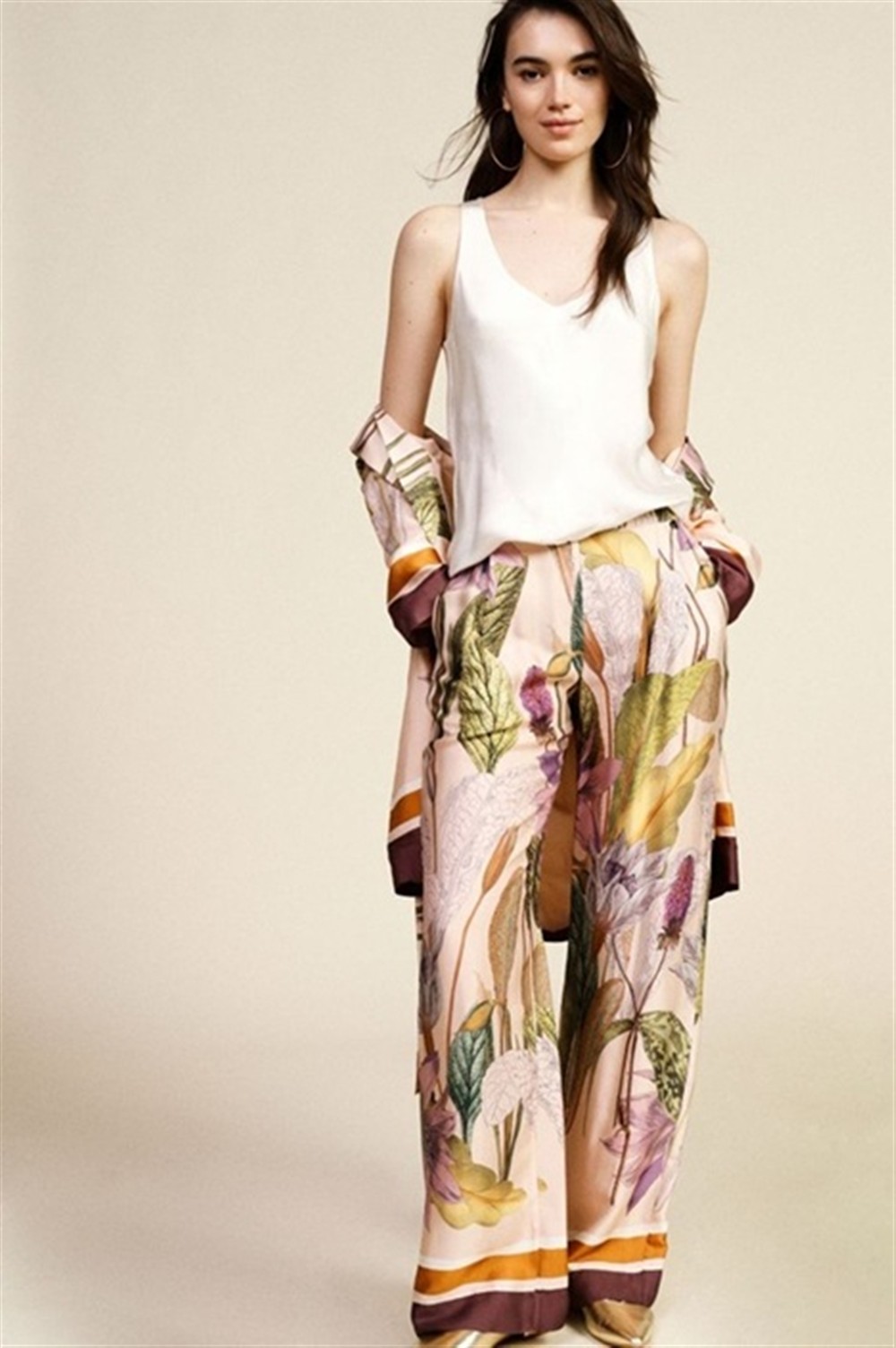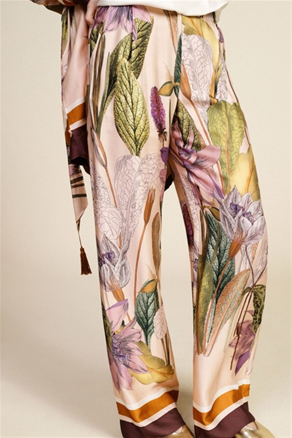 Pantalone stampato con gamba dritta ed elastico sul retro del cinto