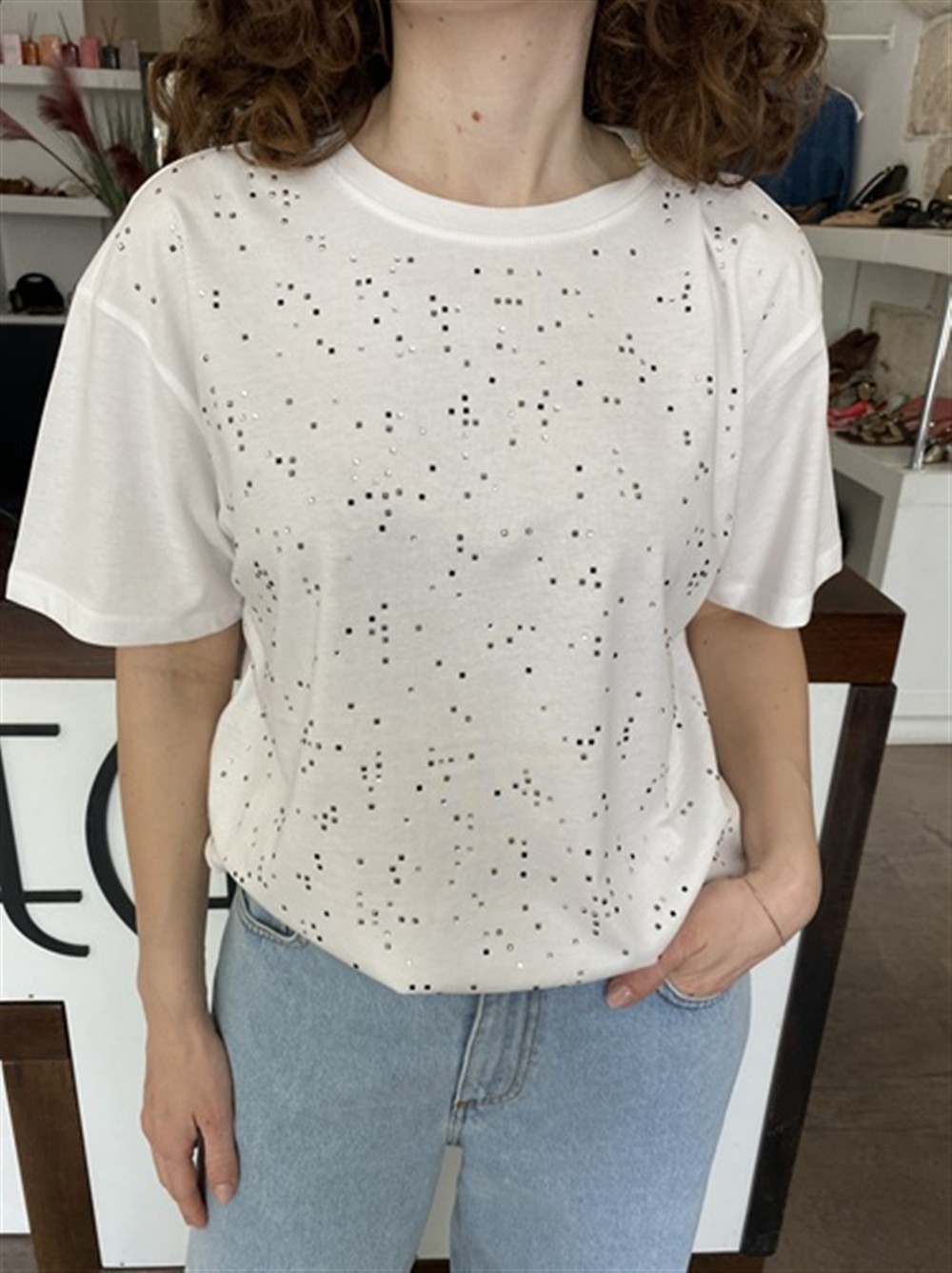 T-shirt over con applicazioni white