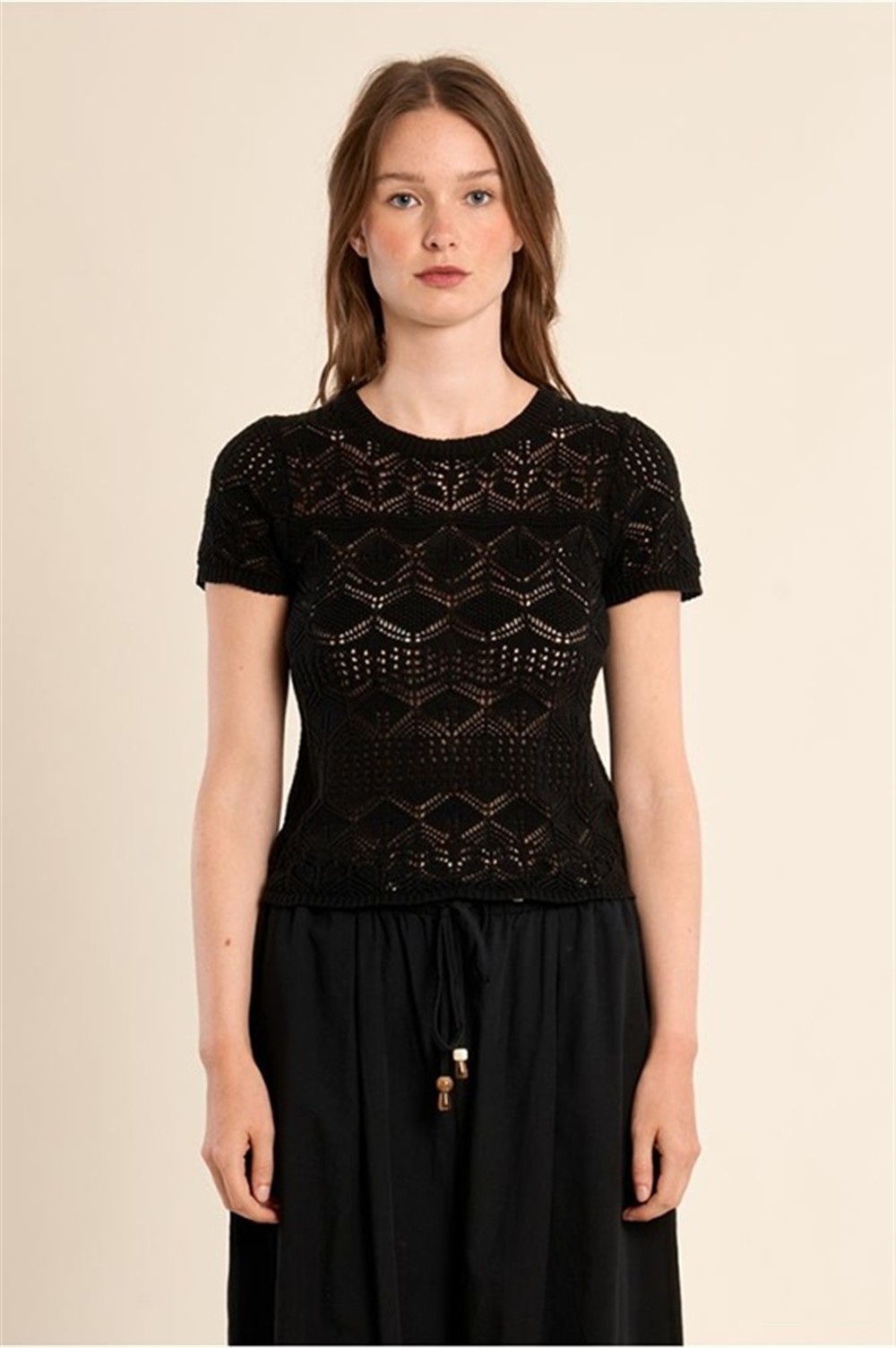 E1732EP BLACK T-shirt in crochet