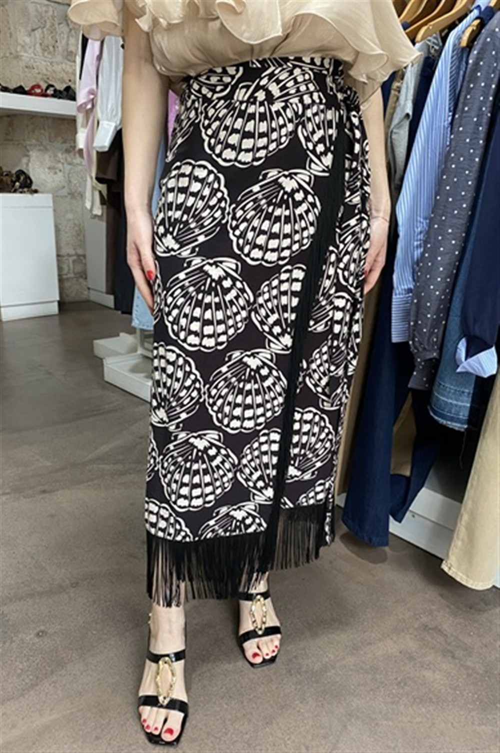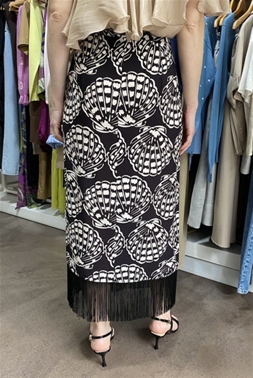GCOS1DPA Gonna midi a portafoglio stampata con frange