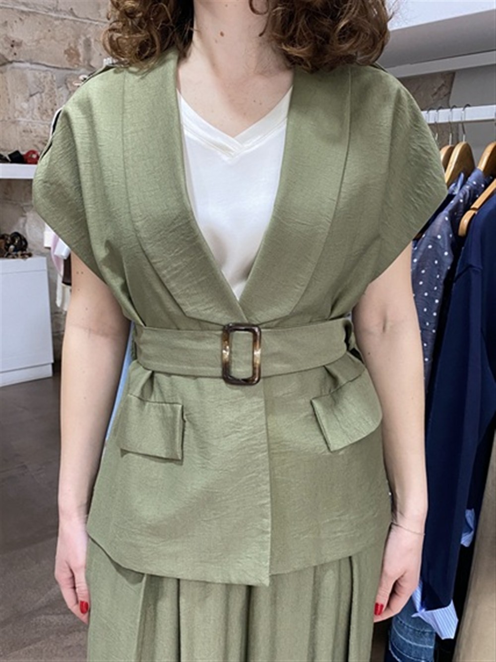 Gilet con revers e cintura