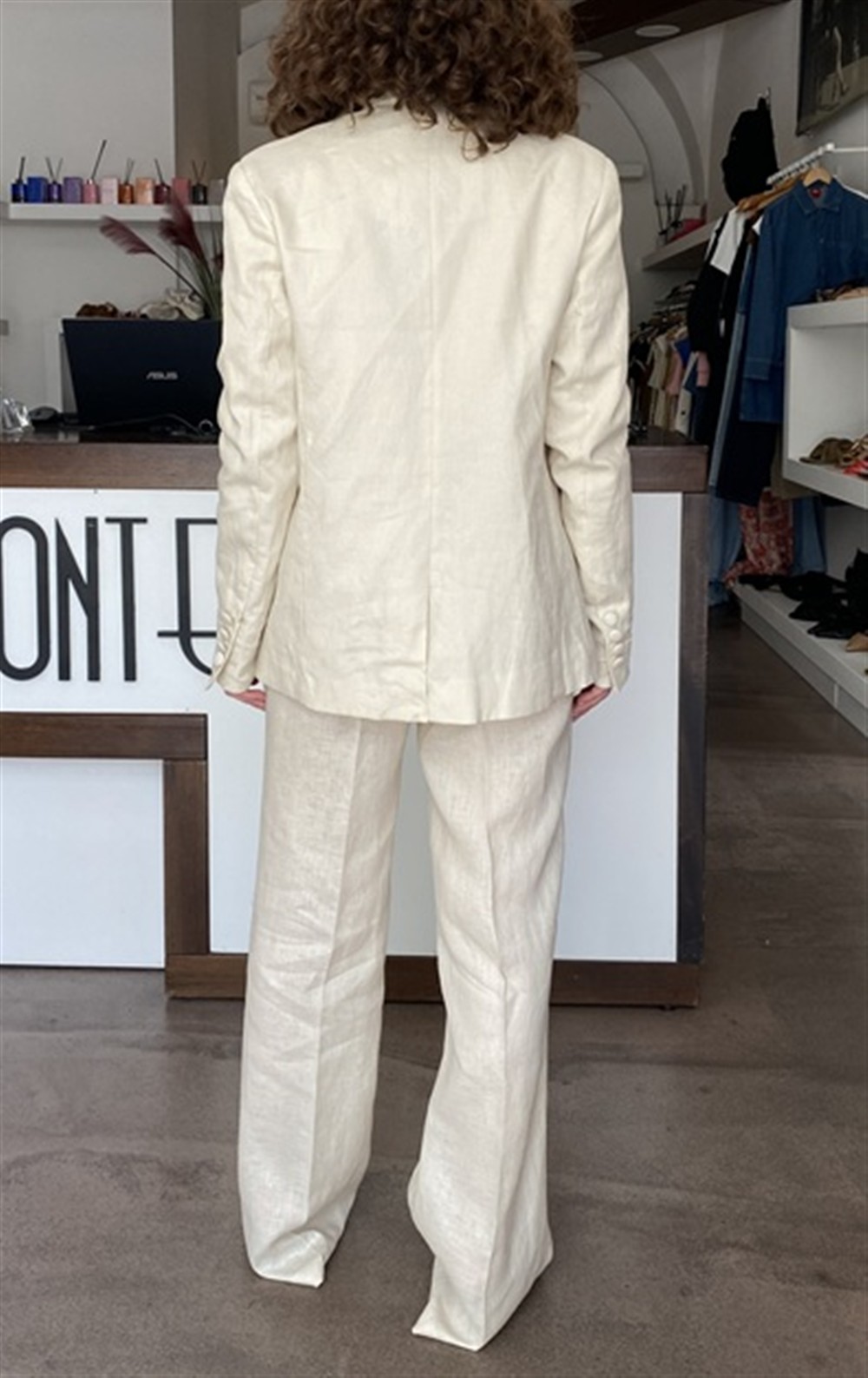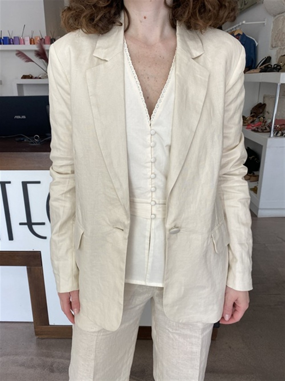 Giacca monopetto in lino chalk