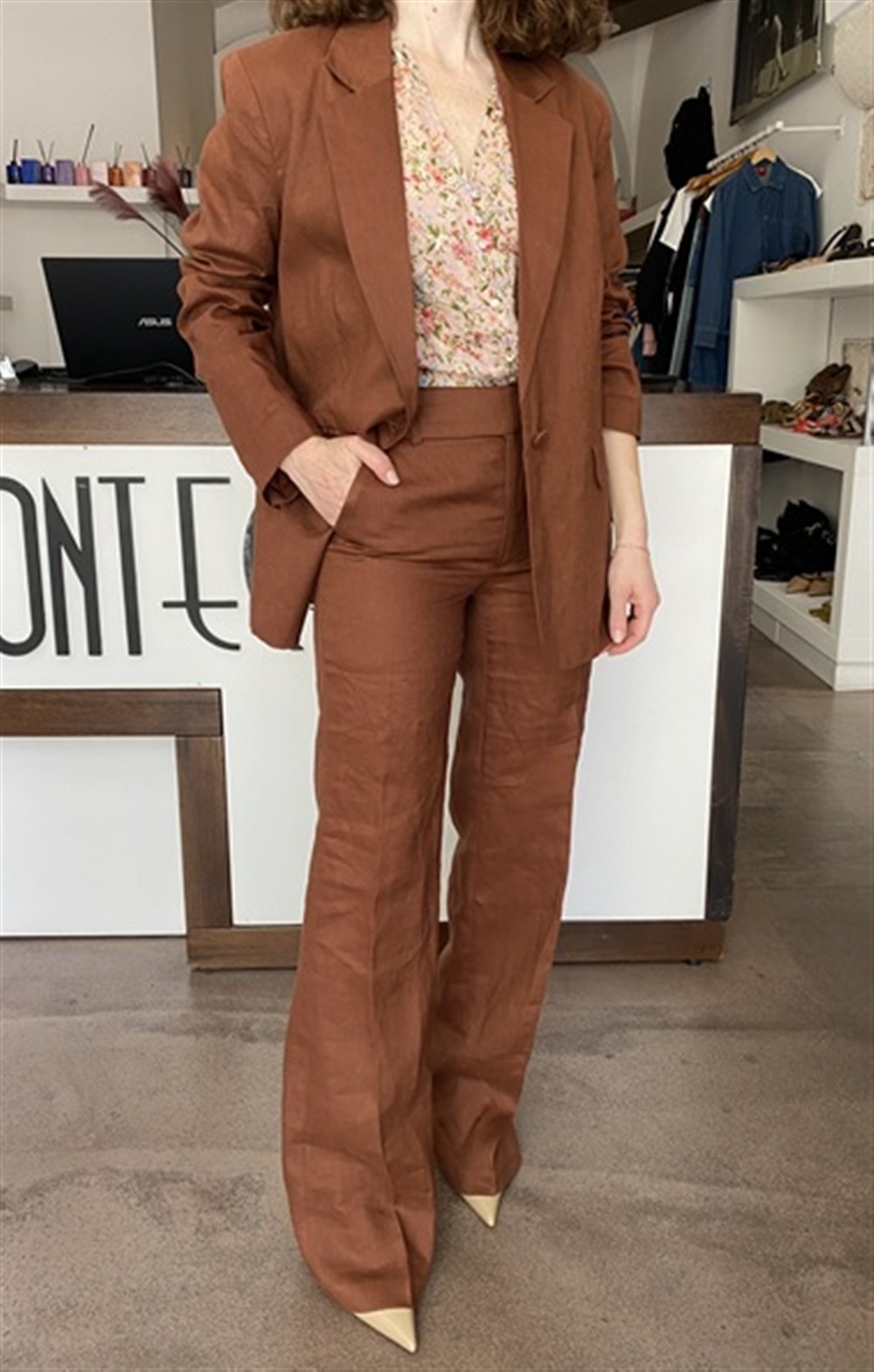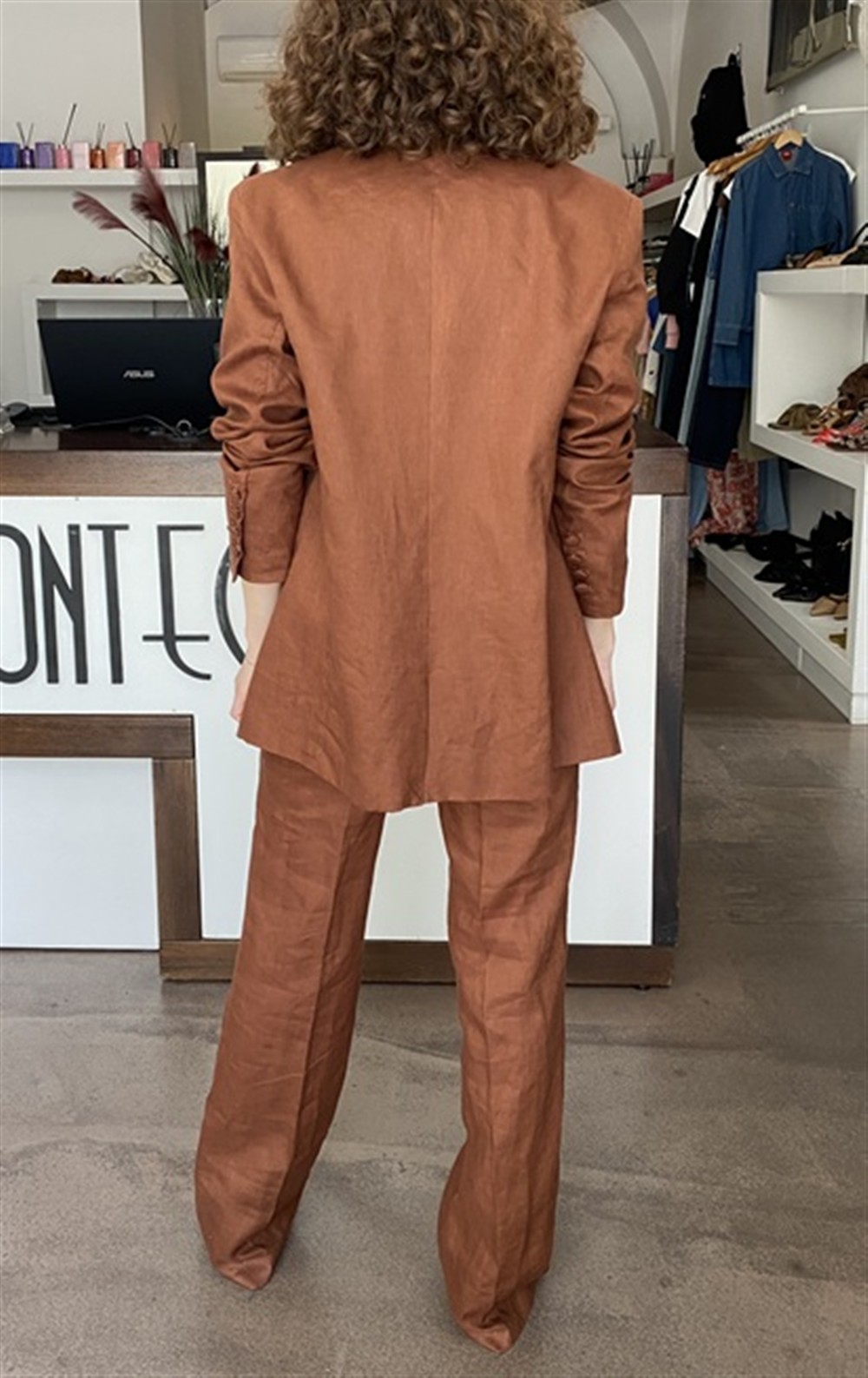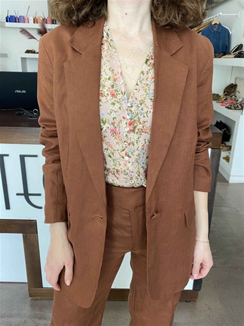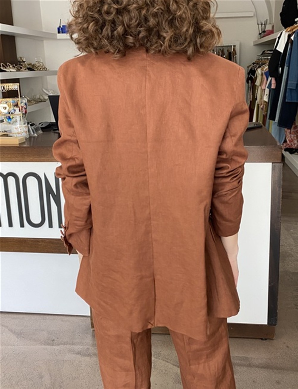 Giacca monopetto in lino cappuccino