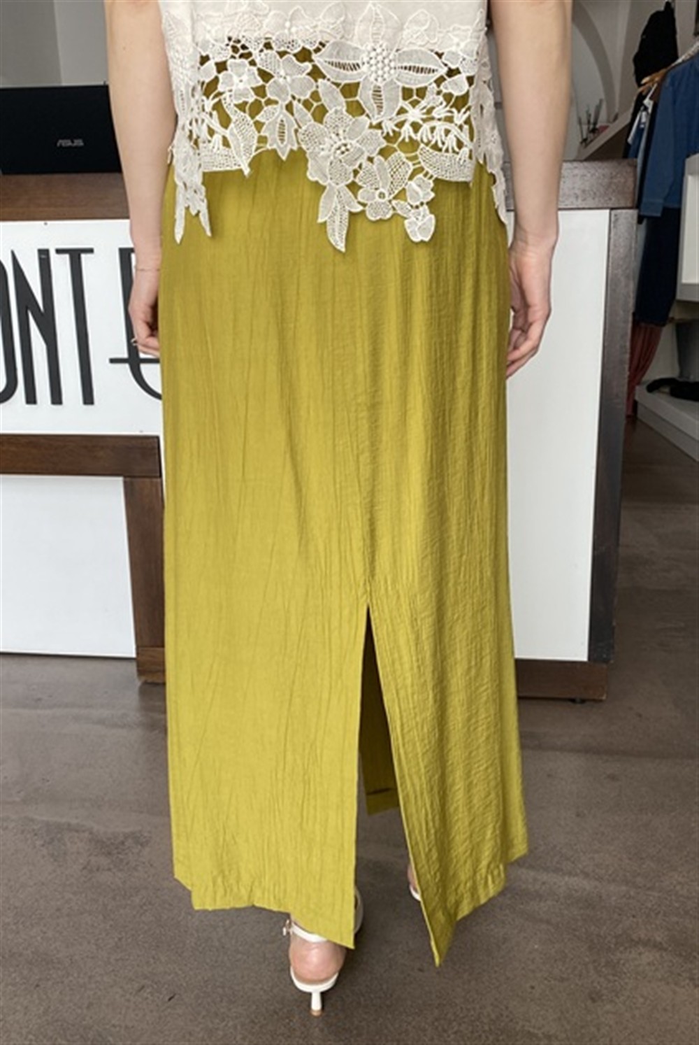 SSG3822 CEDRO Gonna lunga con spacco frontale e posteriore al centro ed elastico in vita