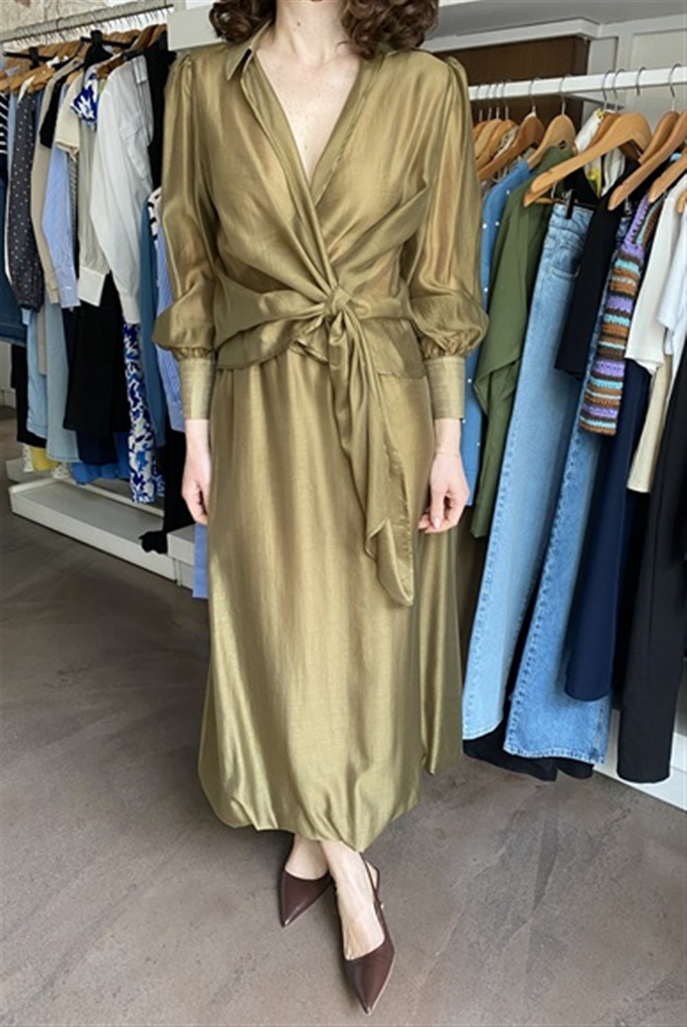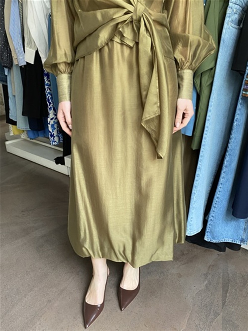 Gonna midi con elastico interno in vita oliva