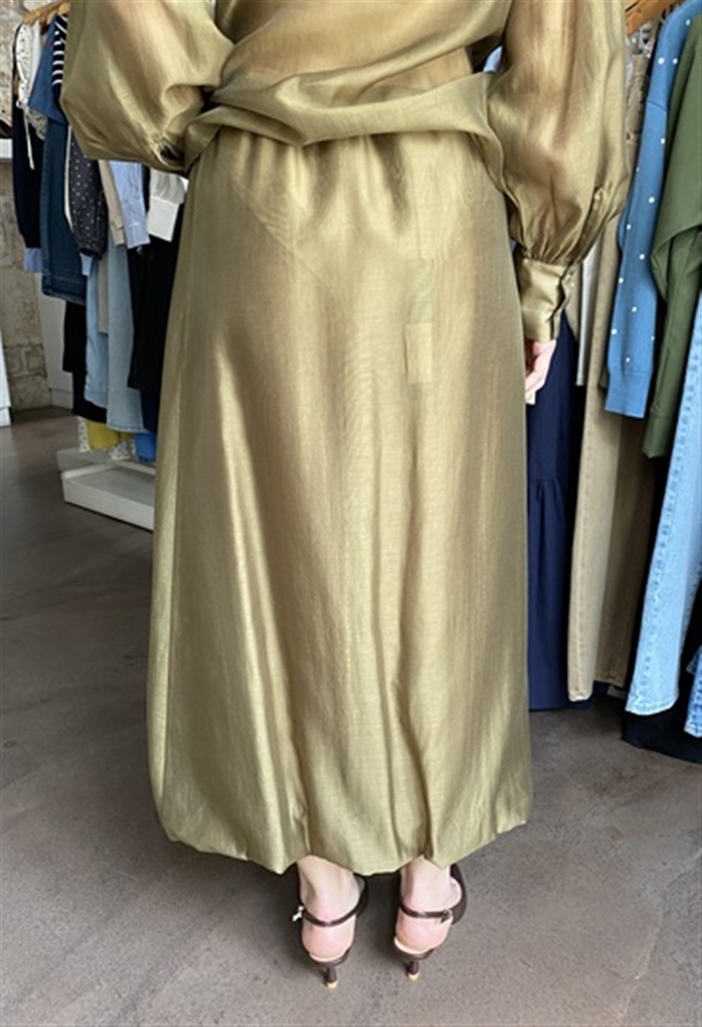 C0579S OLIVA Gonna midi con elastico interno in vita