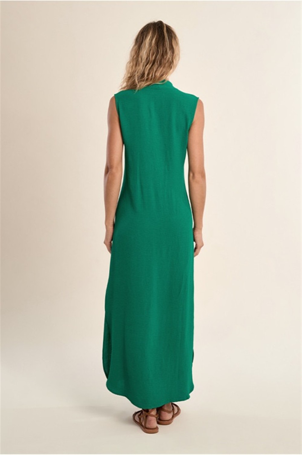 G971EE GREEN Abito lungo con scollo a v