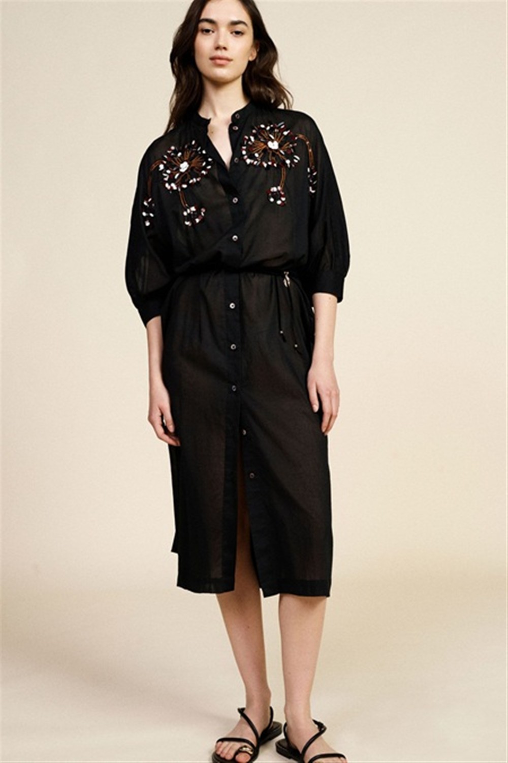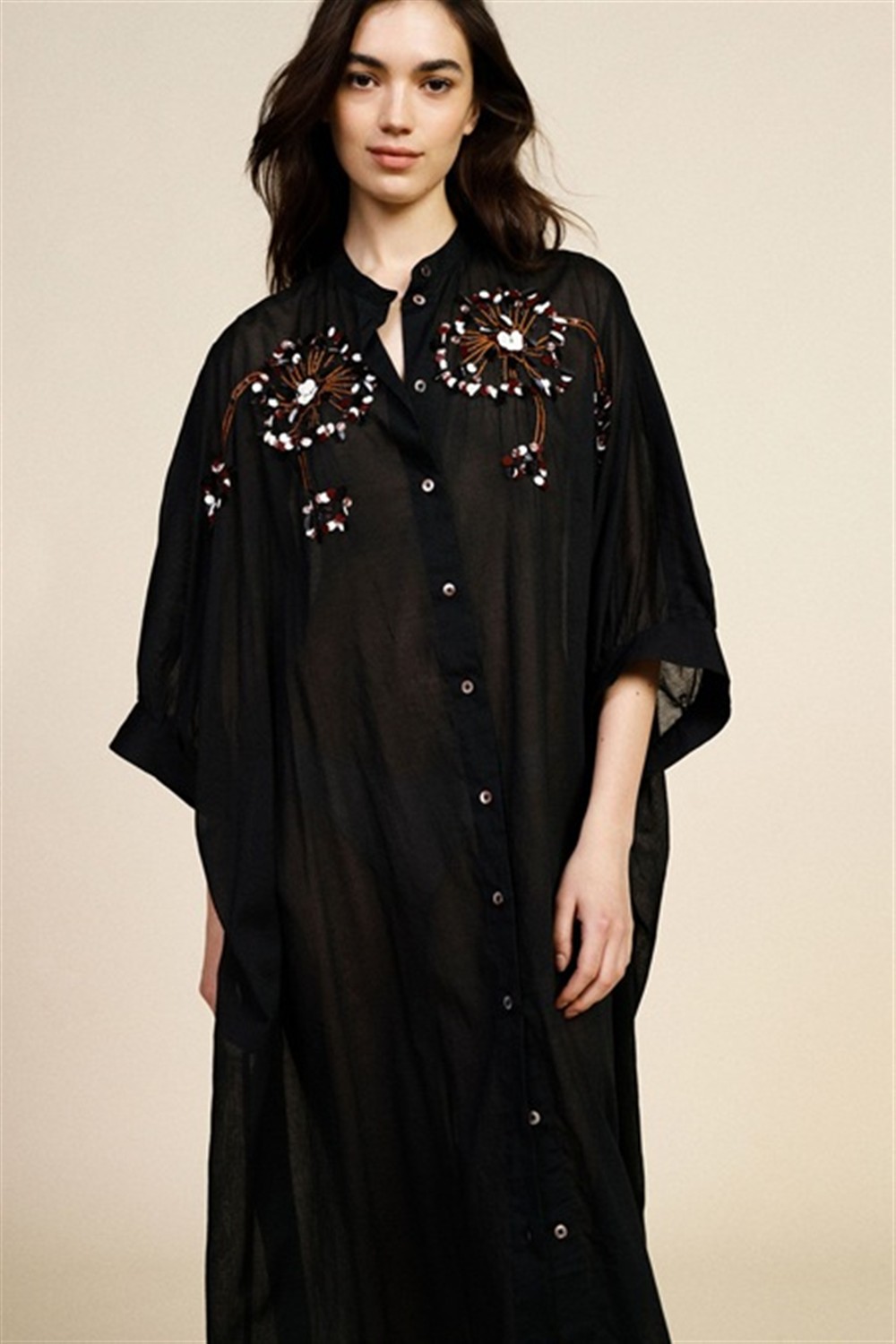 A844A028A Scamiciato lungo con applicazioni