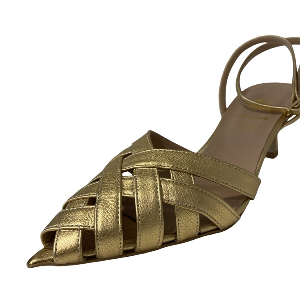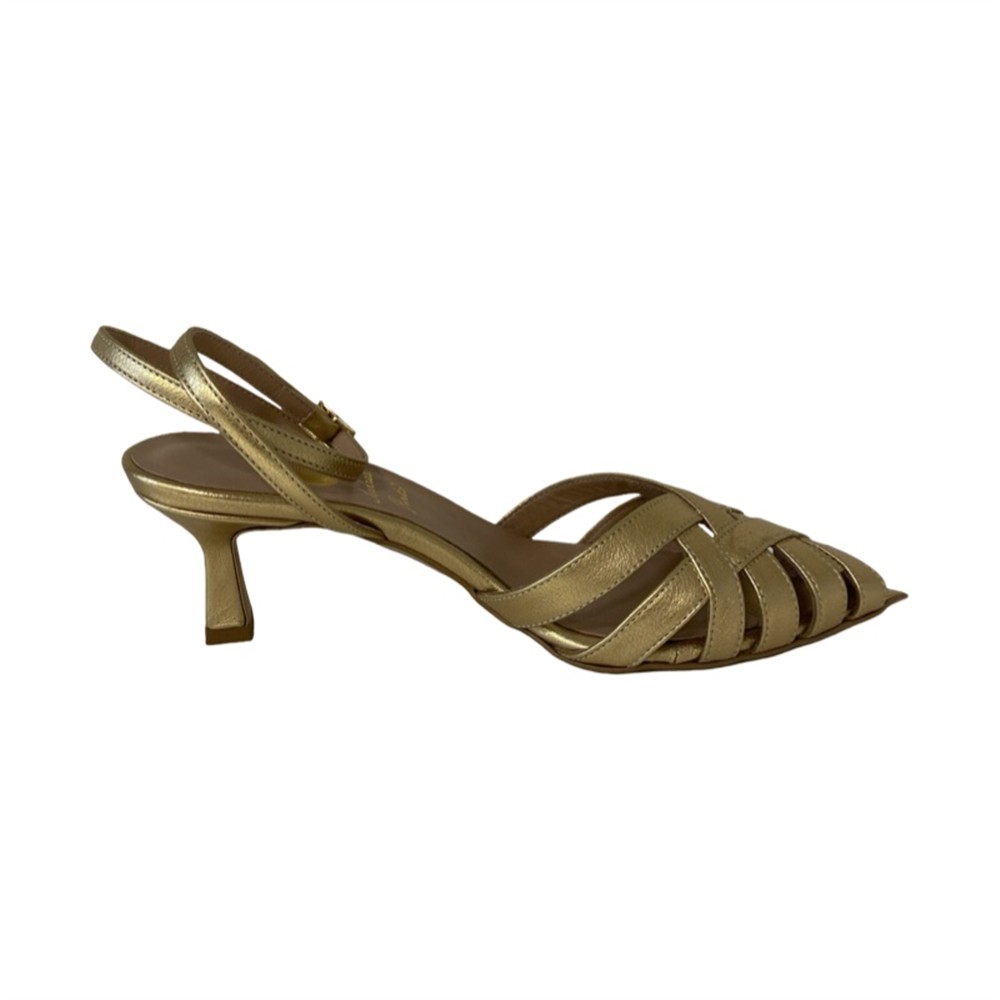 312 OMEGA ORO Sandalo a punta con braccialetto incrocio di fascette e tacco 5 cm