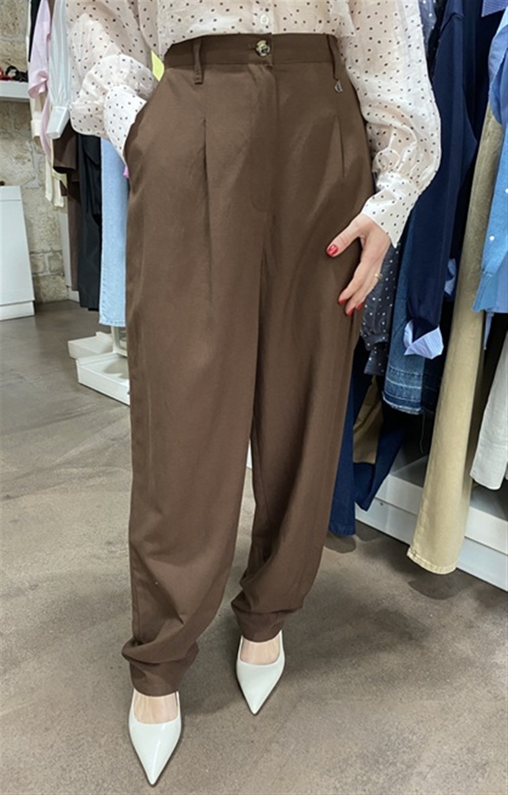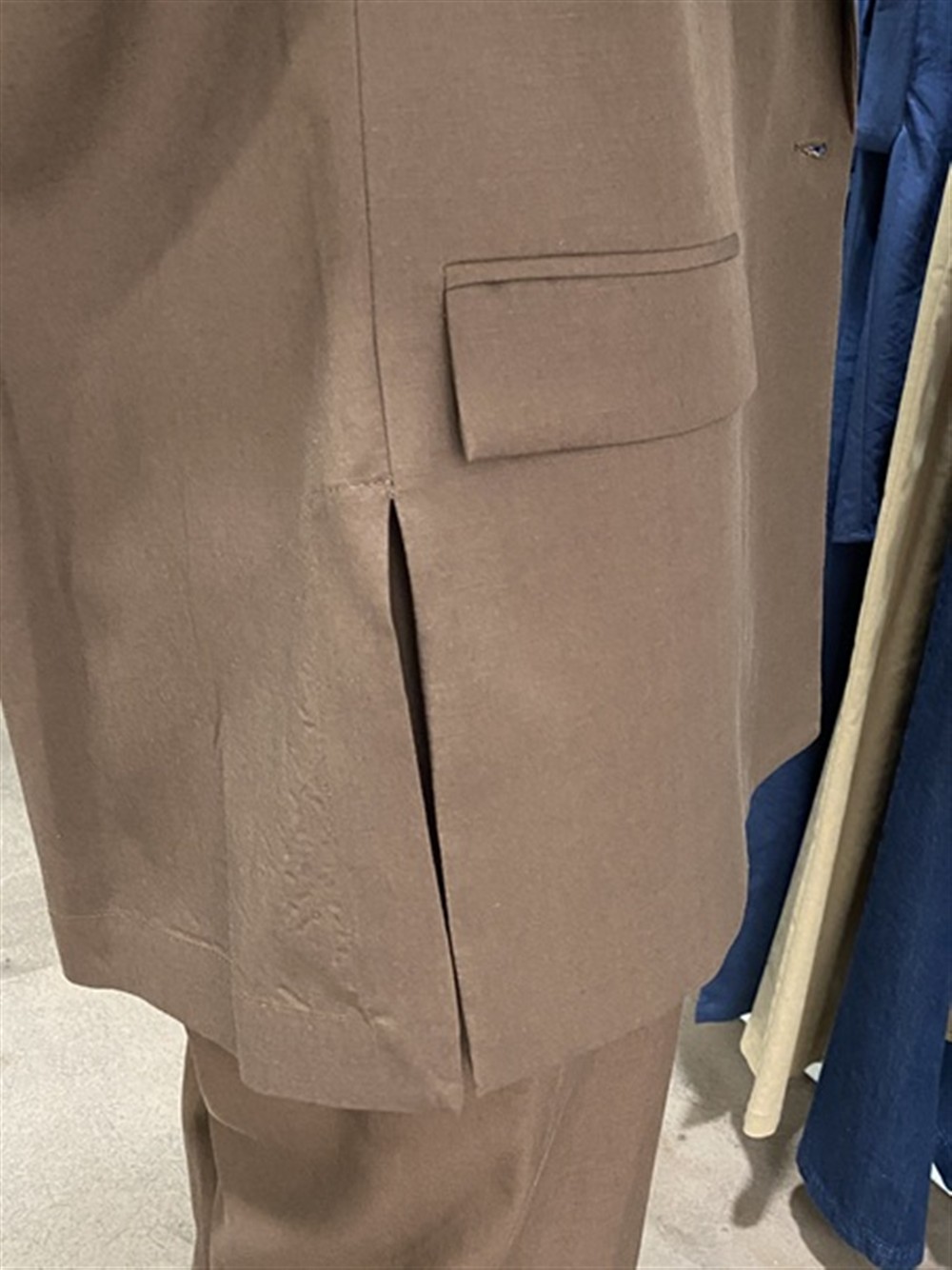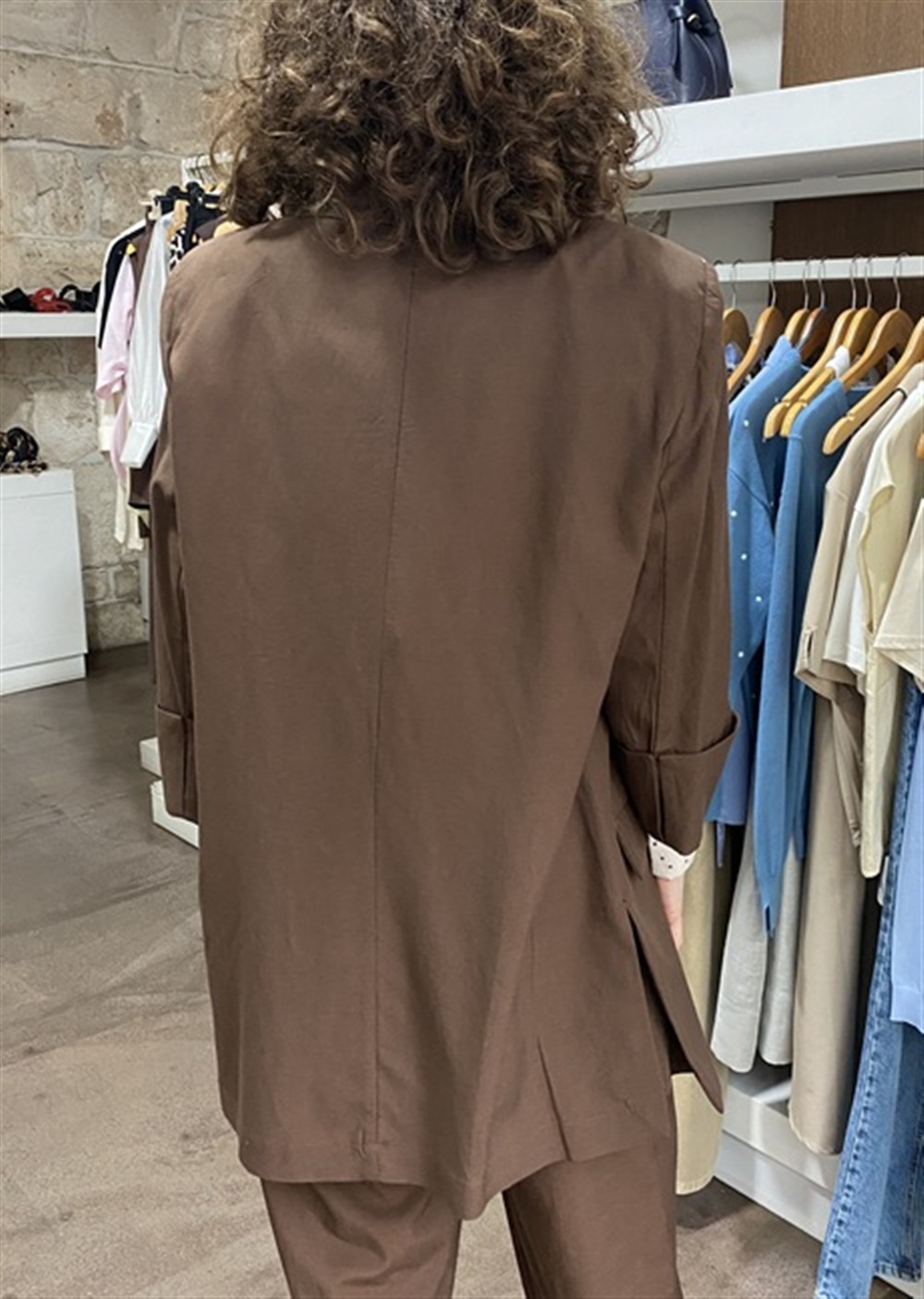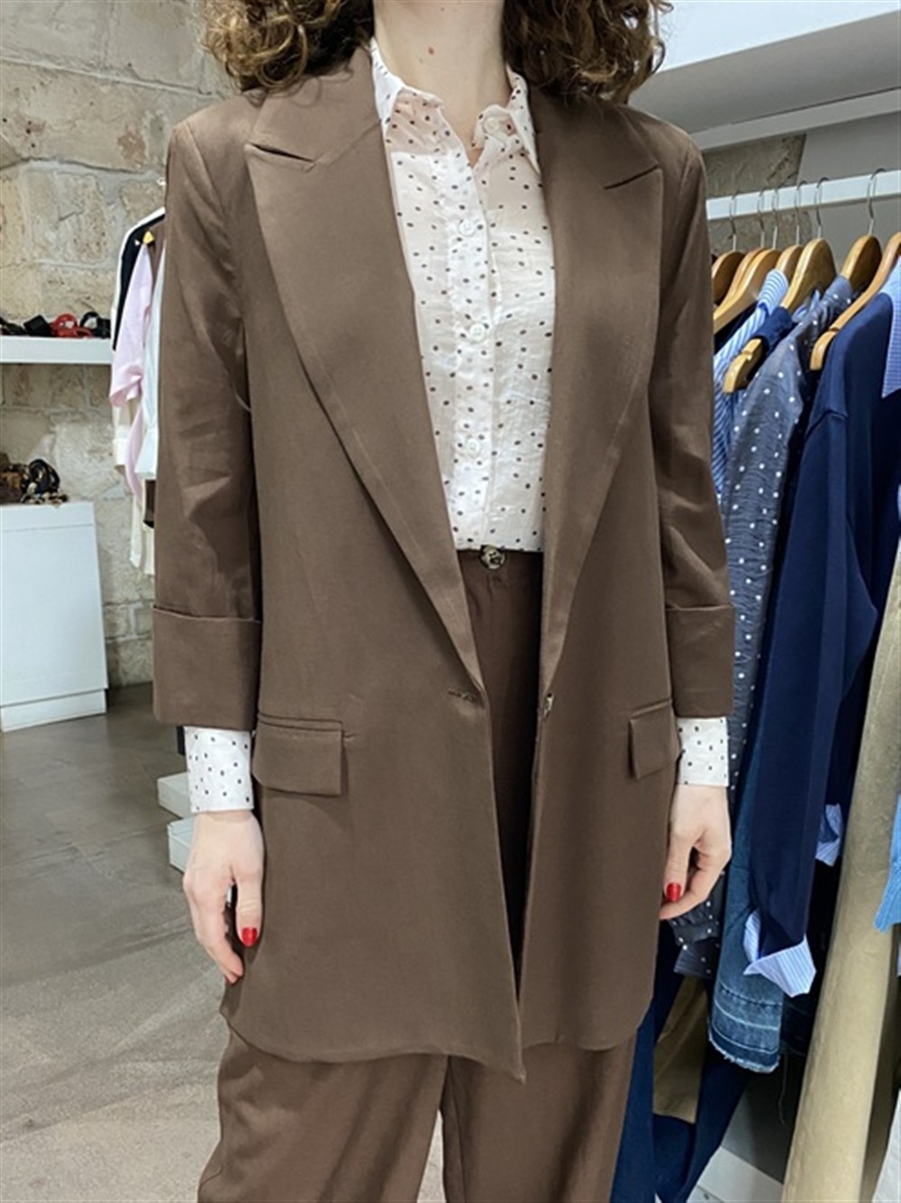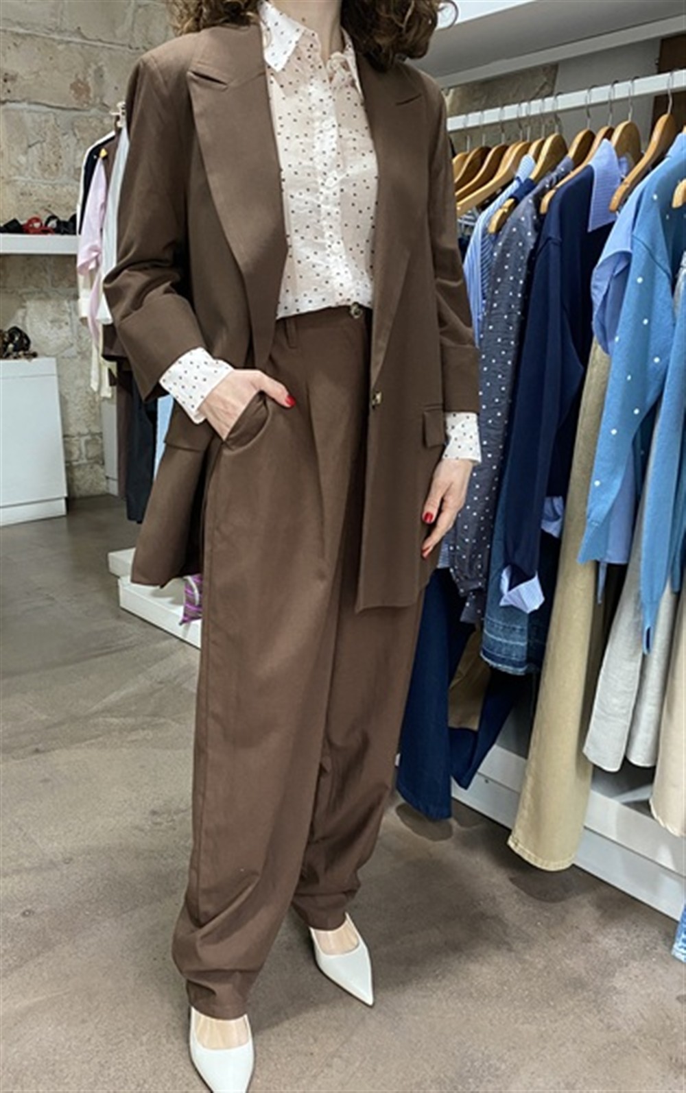 Tailleur completo: giacca monopetto con manica a 3/4 + pantalone carrot fit caffè