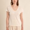 T-shirt con scollo a v e applicazioni offwhite