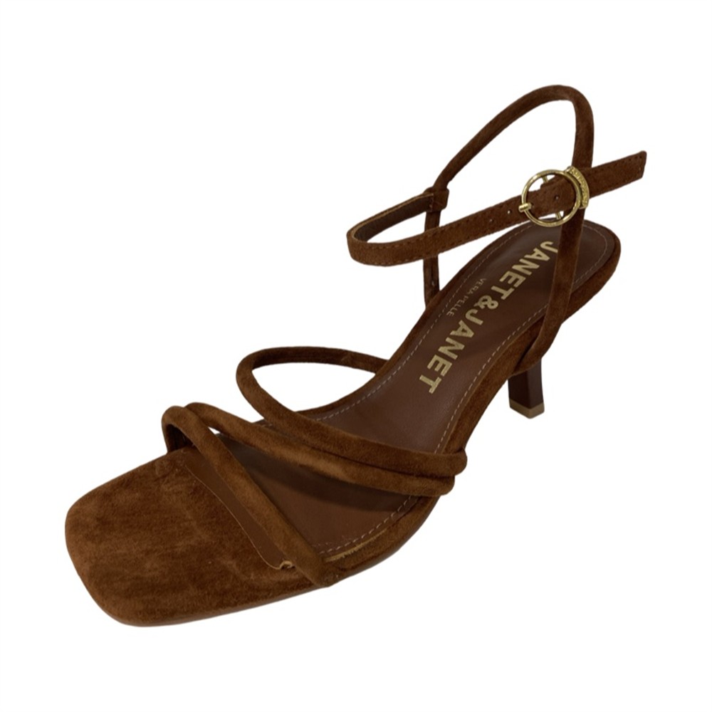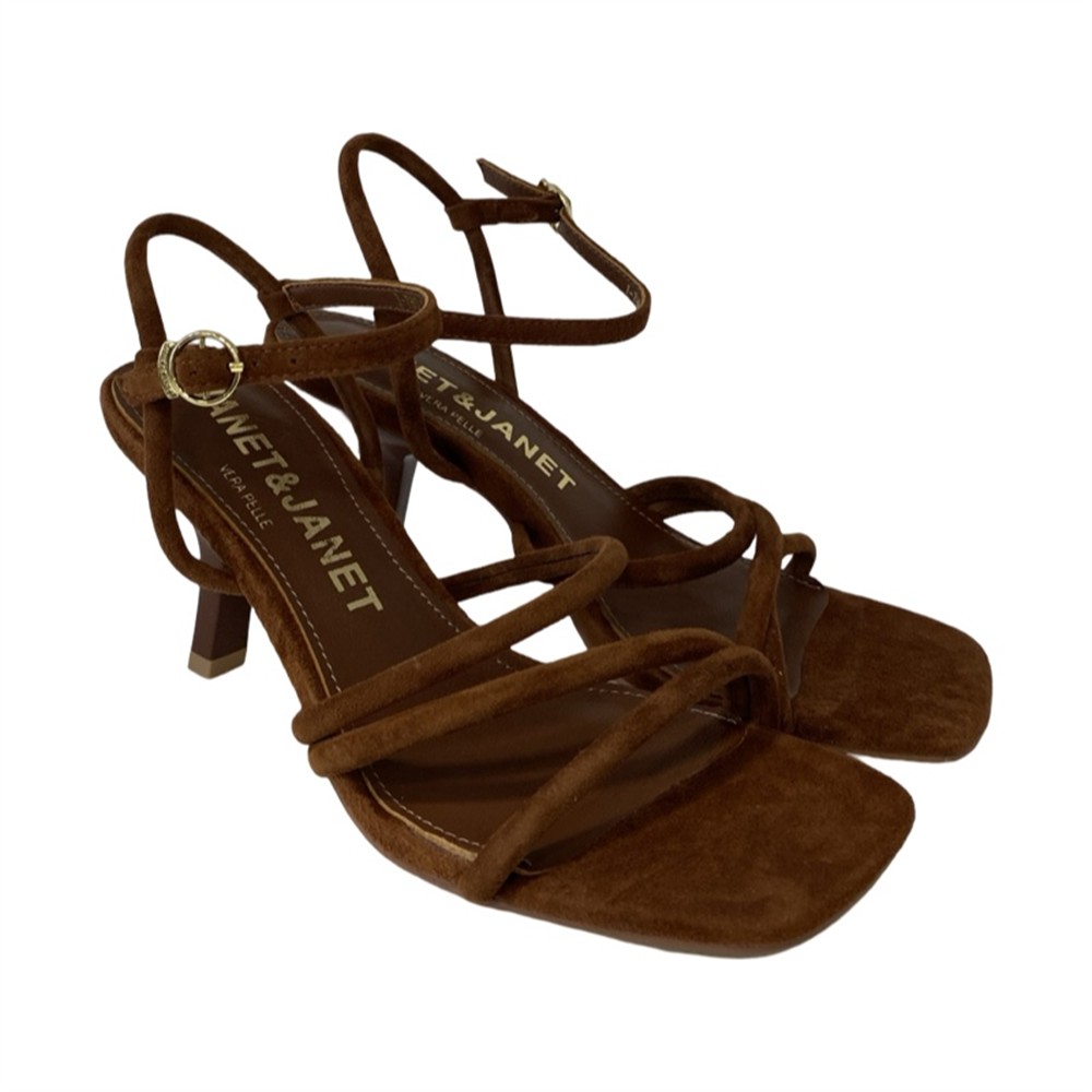 Sandalo a fascette in camoscio con tacco di 7 cm dark brown