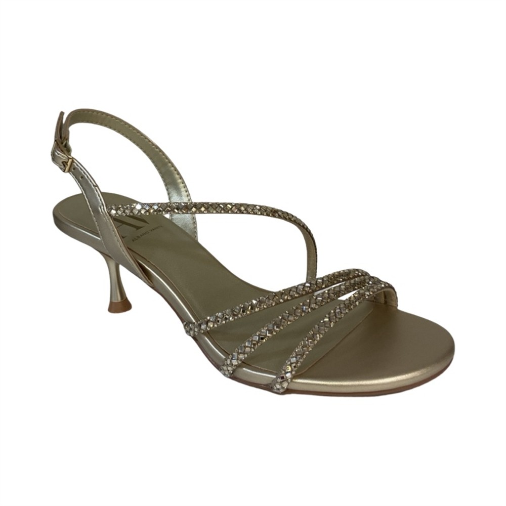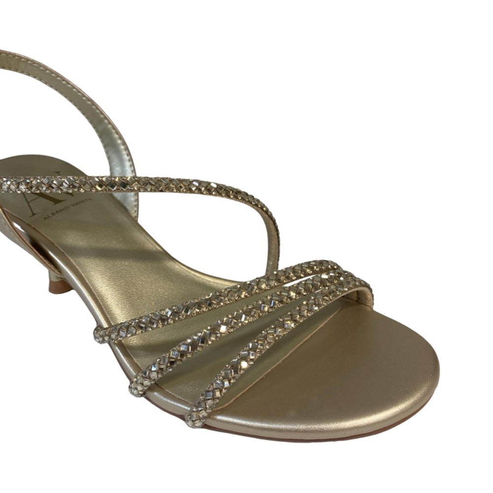 Sandalo con fascette di strass e tacco di 5 cm platino