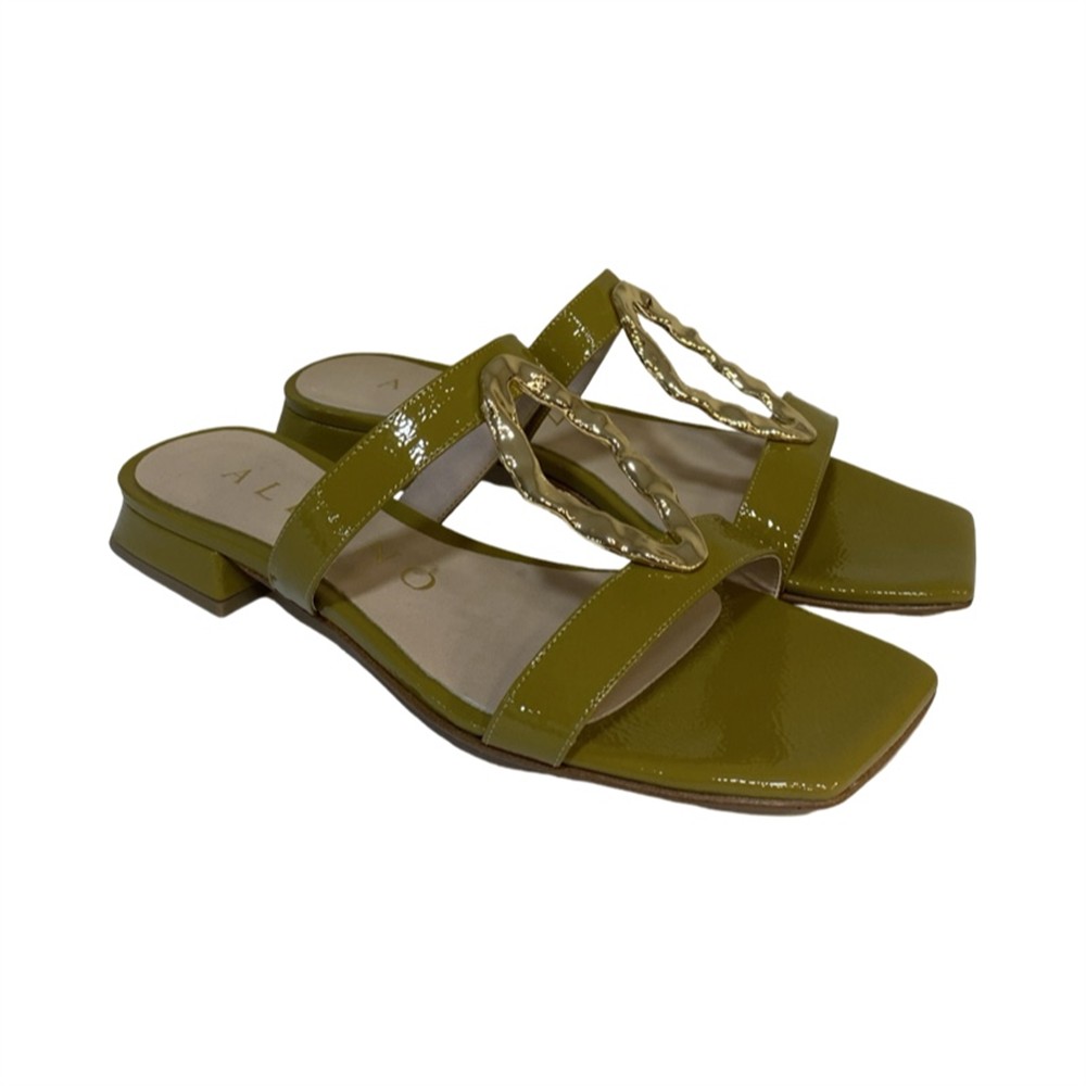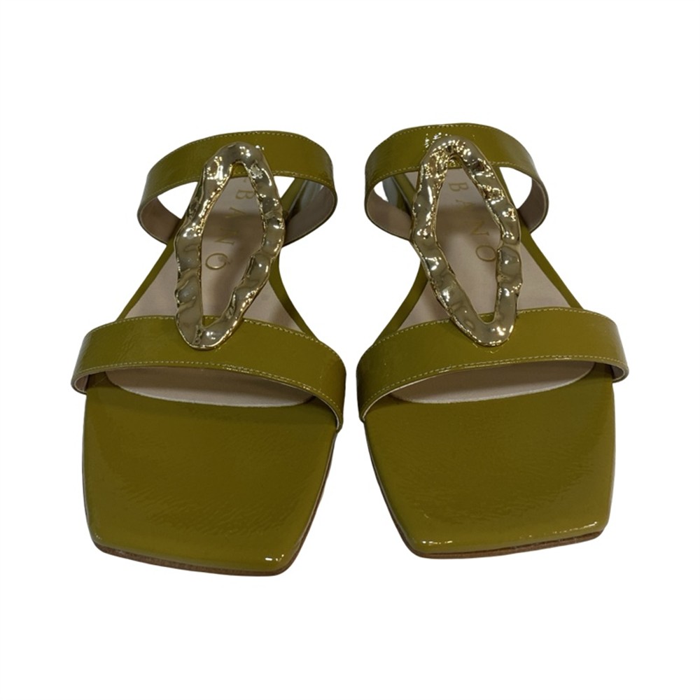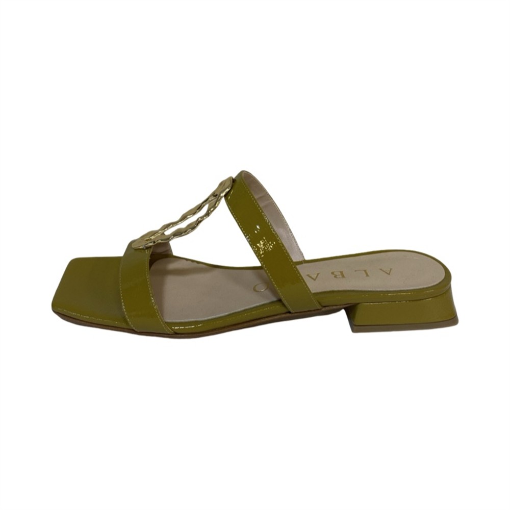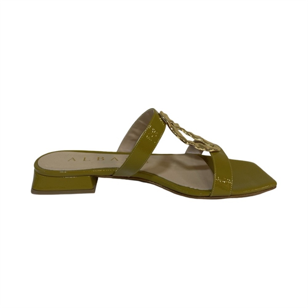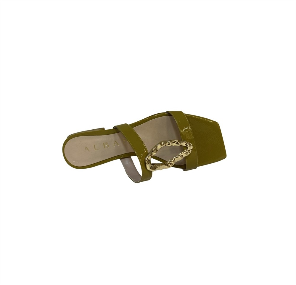 Sandalo a punta quadra in naplak con accessorio e tacco di 2 cm oliva