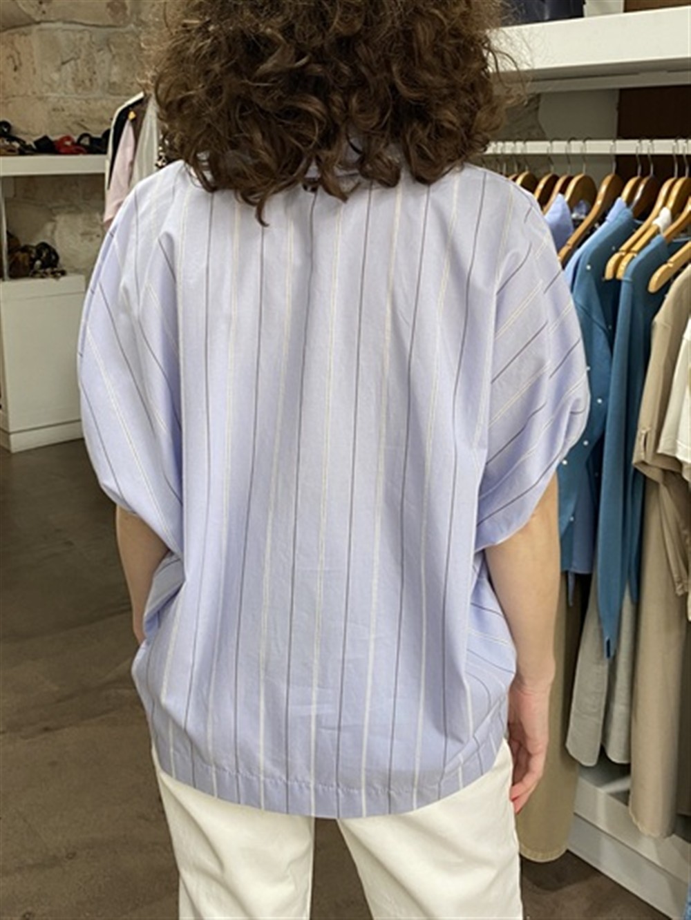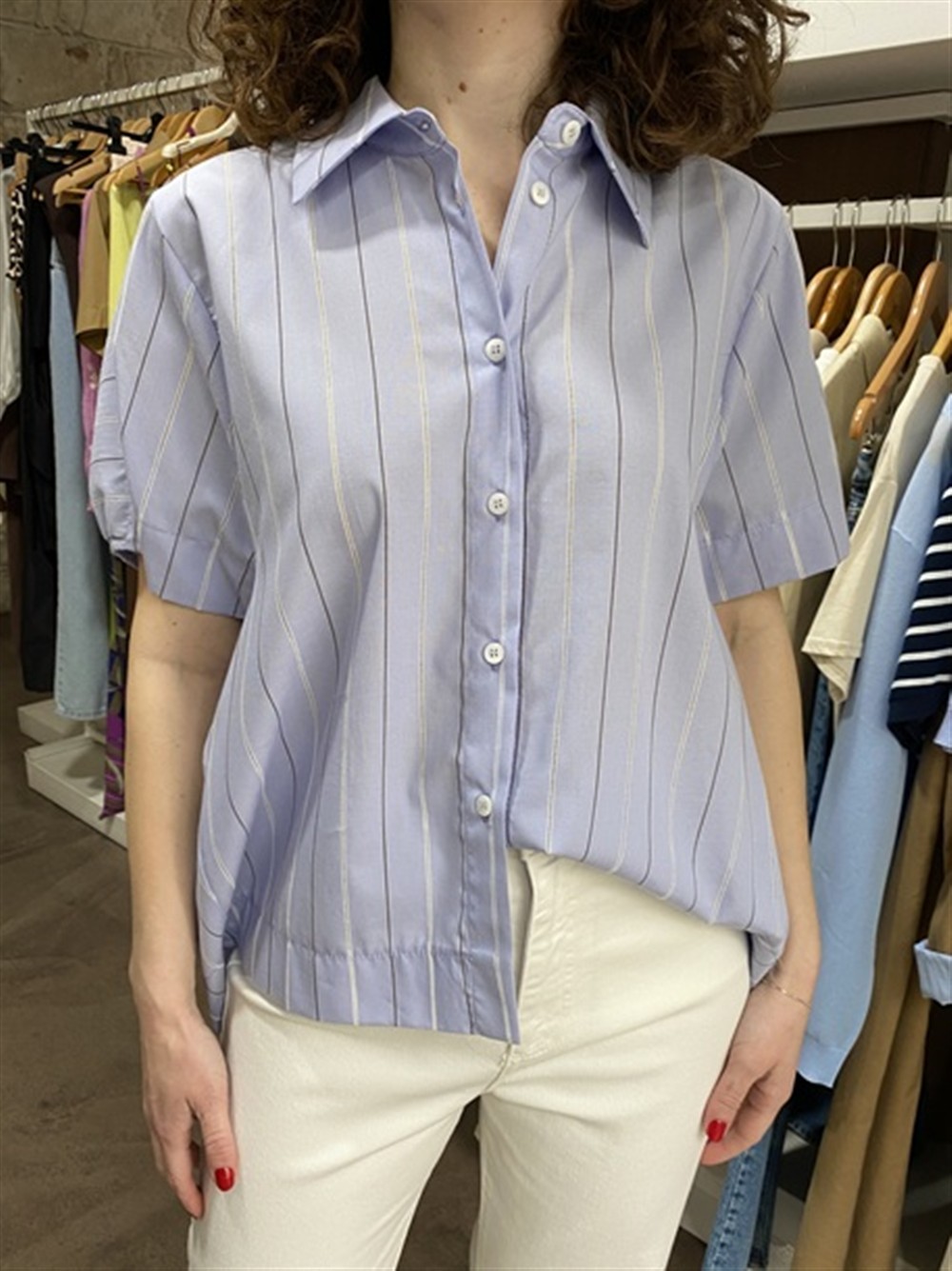 Camicia mezza manica a scatola stampa righe
