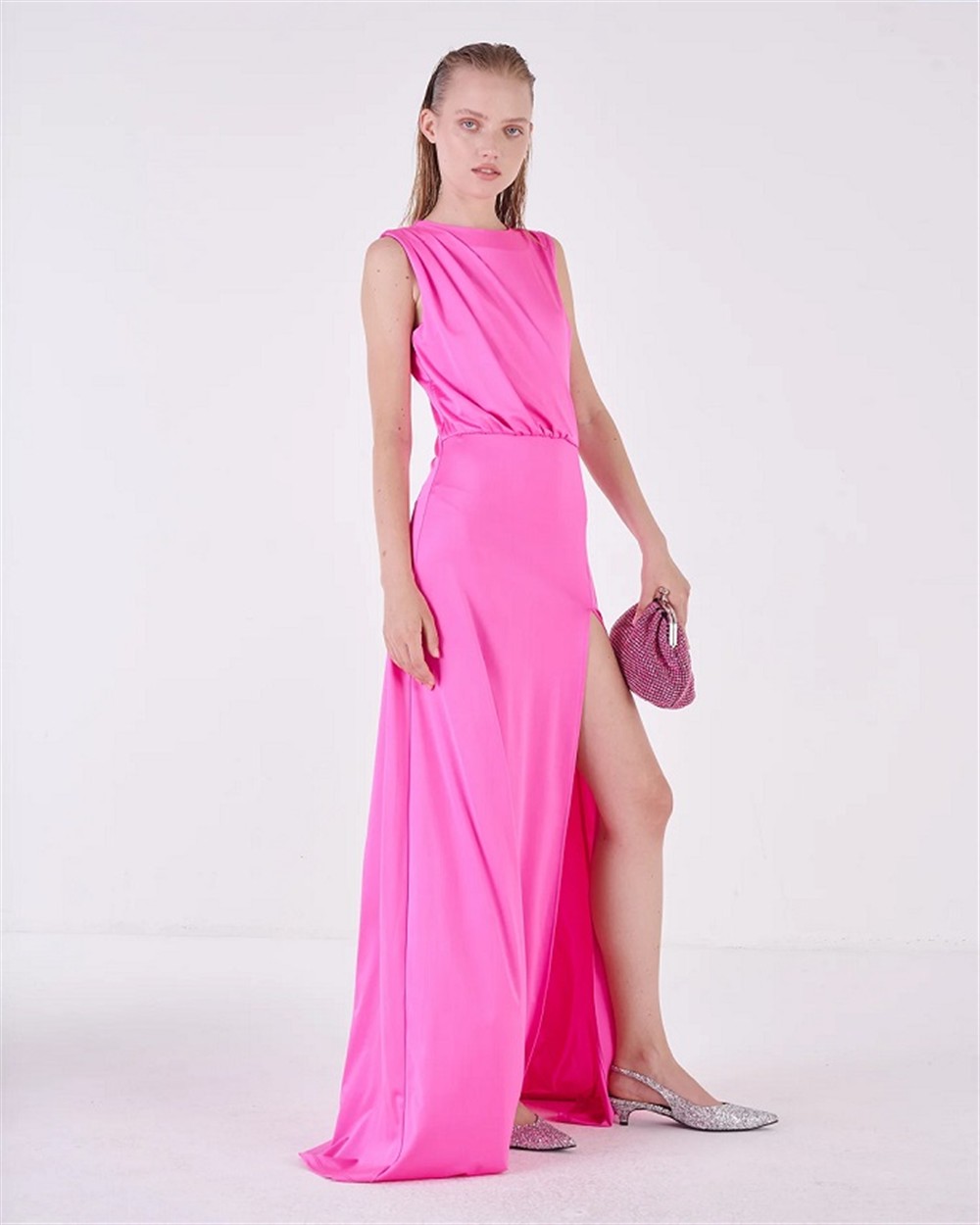 GPP24426VEJG Abito in jersey con spacco e drappeggio sul corpino