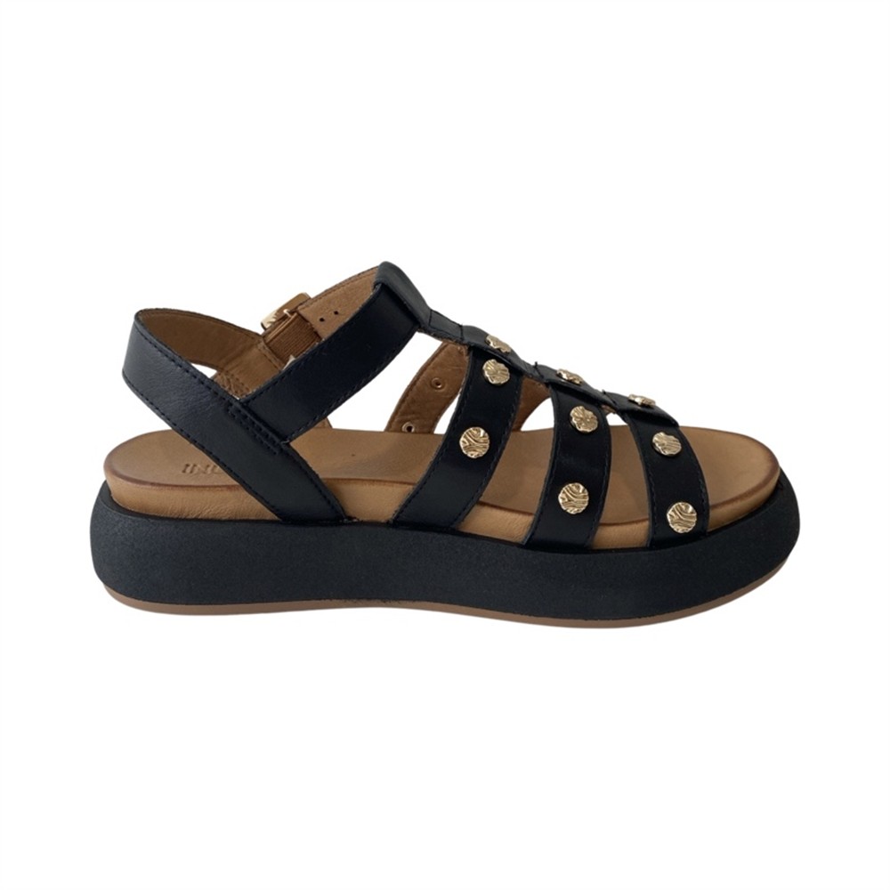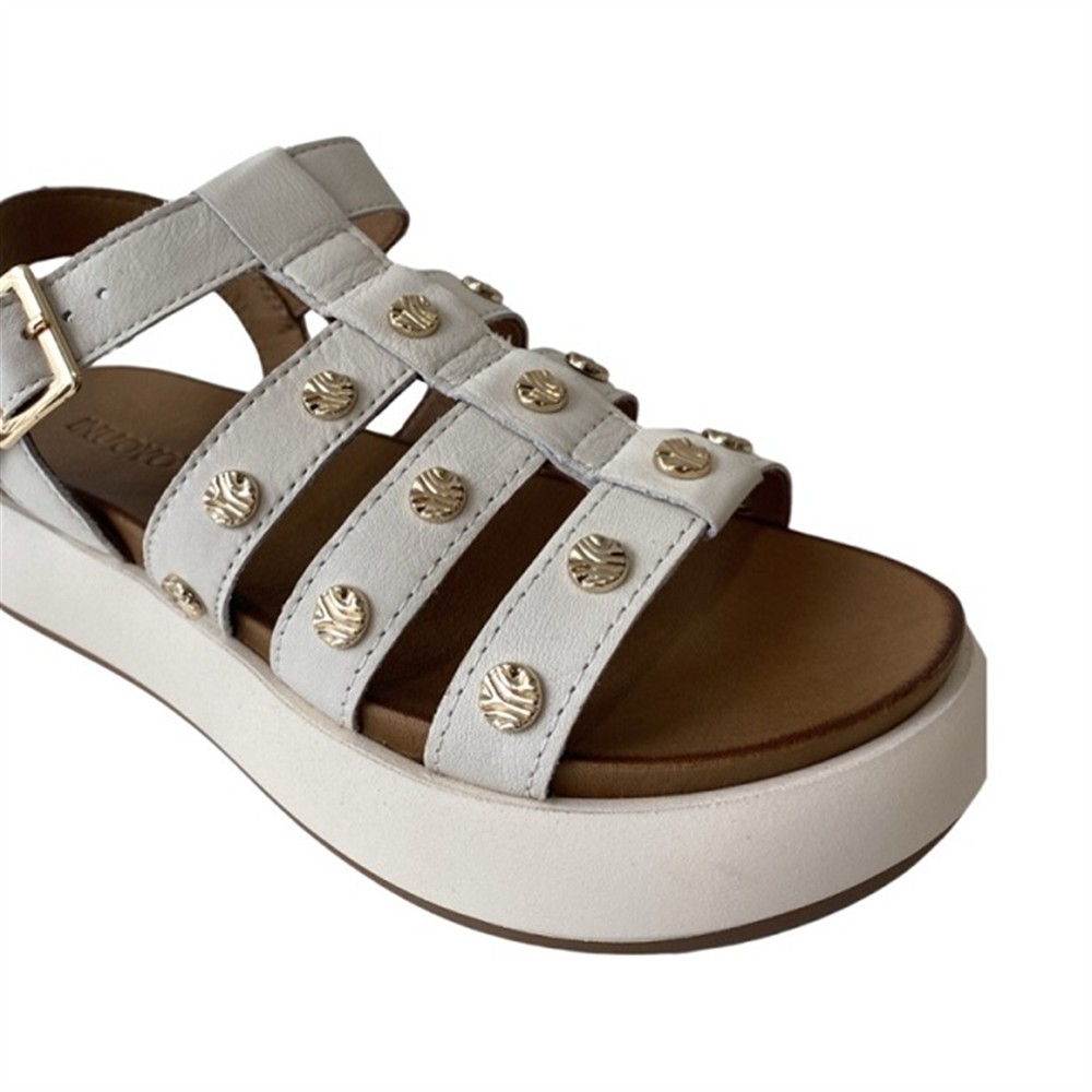 A96020 Sandalo altezza 4 cm e plateau di 3 con tomaia a fascette con borchie applicate