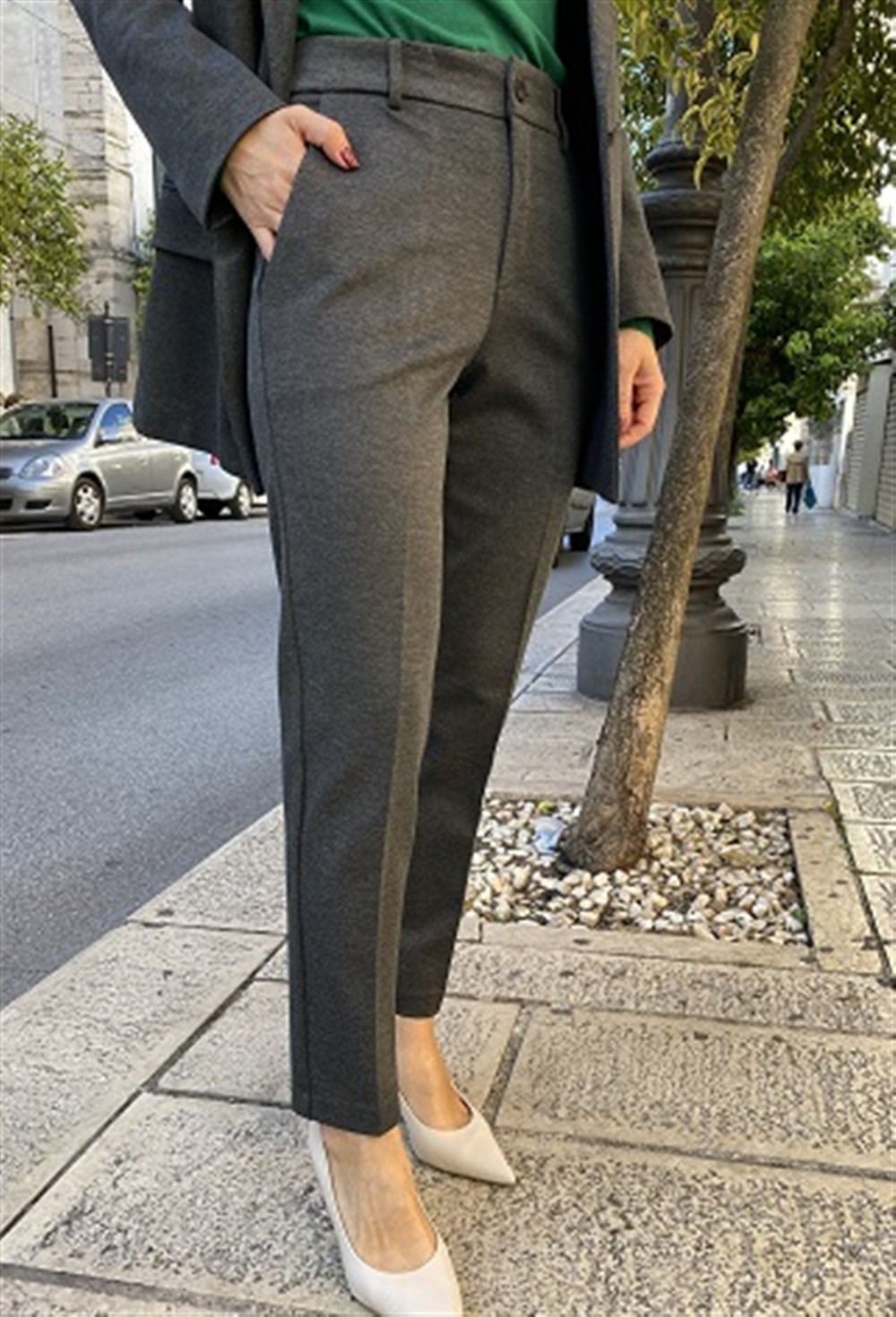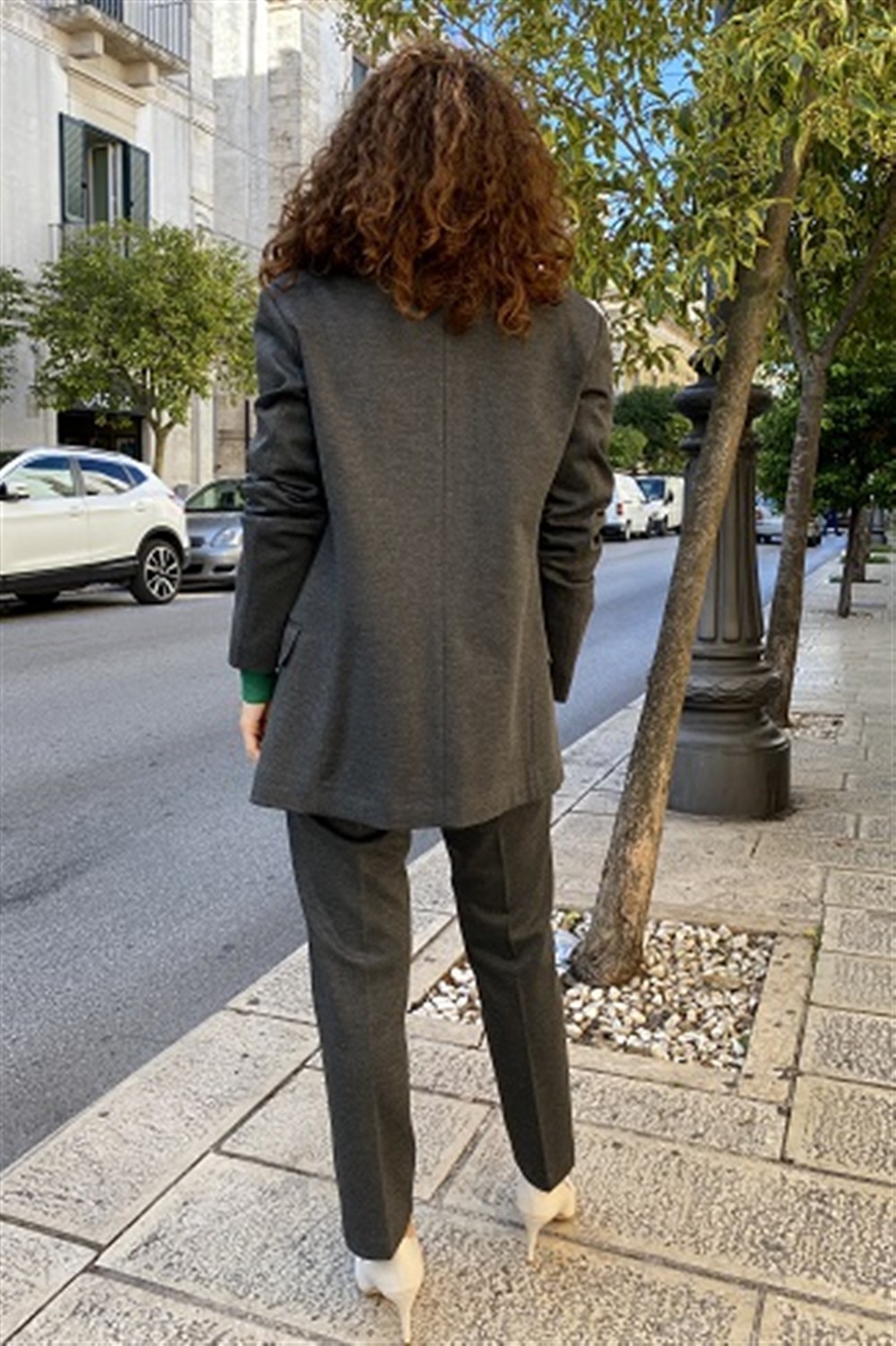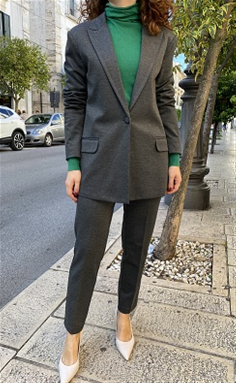 Tailleur con giacca monopetto e pantalone a sigaretta in tessuto melange