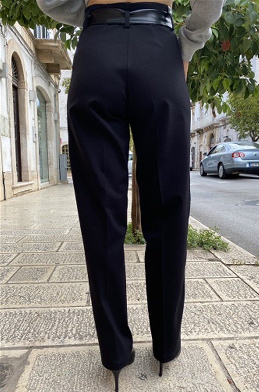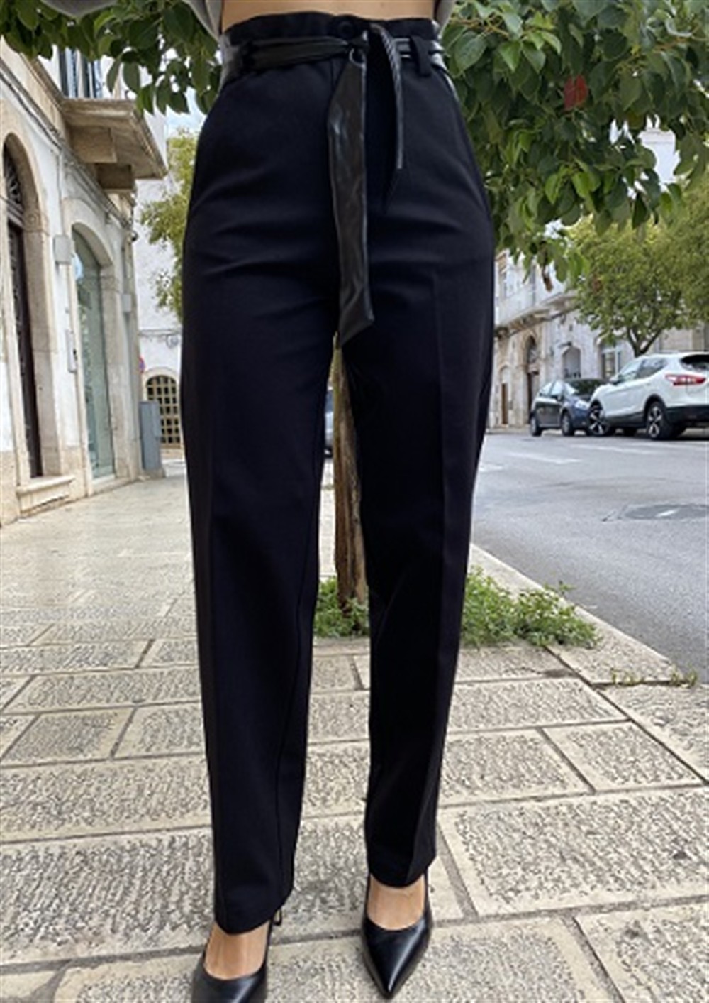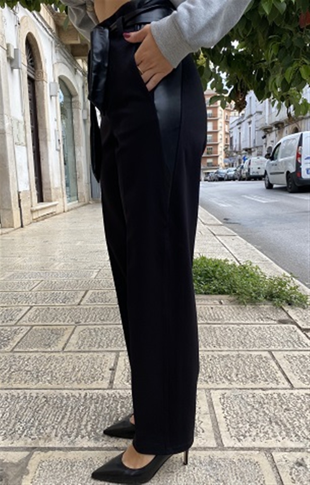 Pantalone con dettagli e cintura in ecopelle