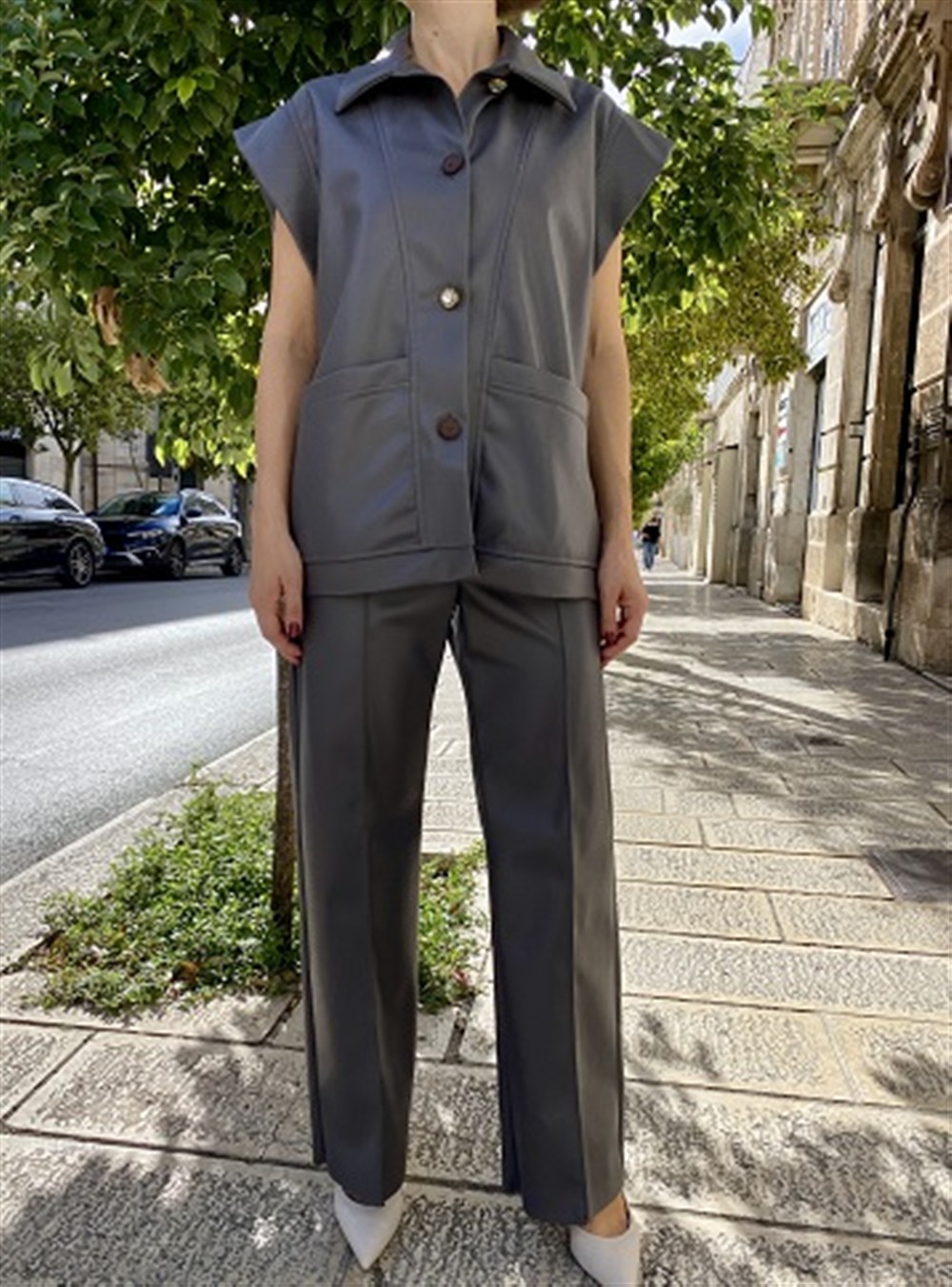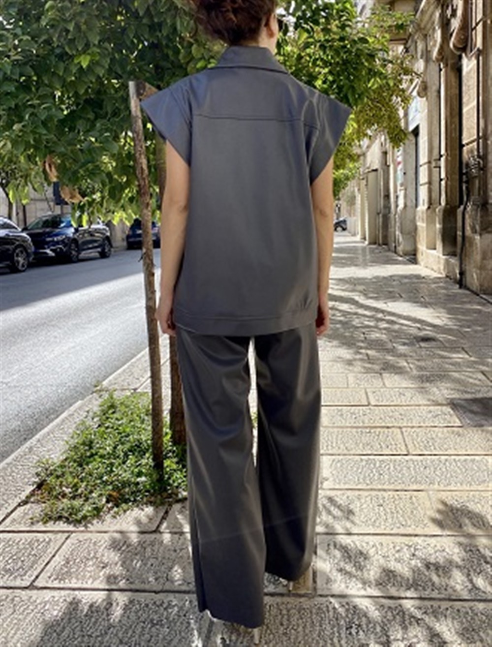 T0704 Pantalone a gamba dritta in ecopelle