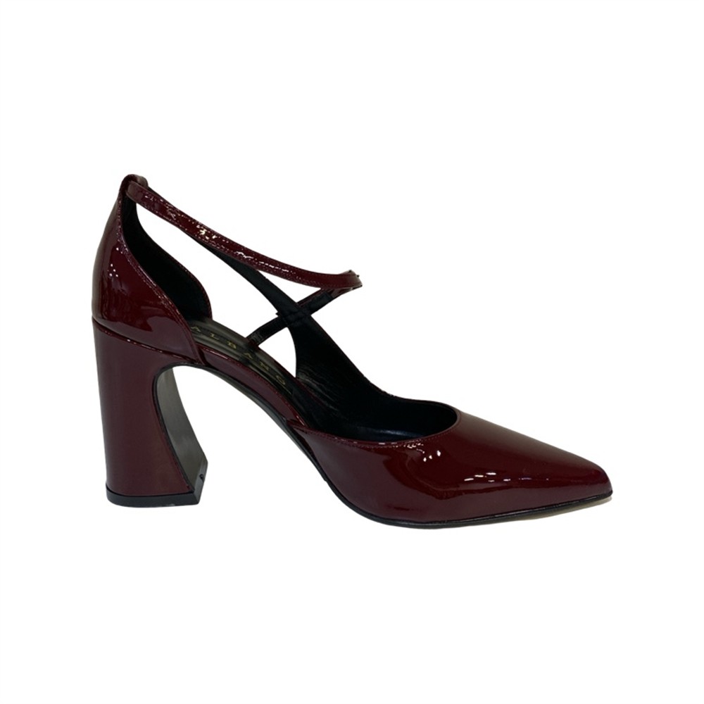 Decolleté in vernice con apertura, braccialetto diagonale e tacco 7 cm