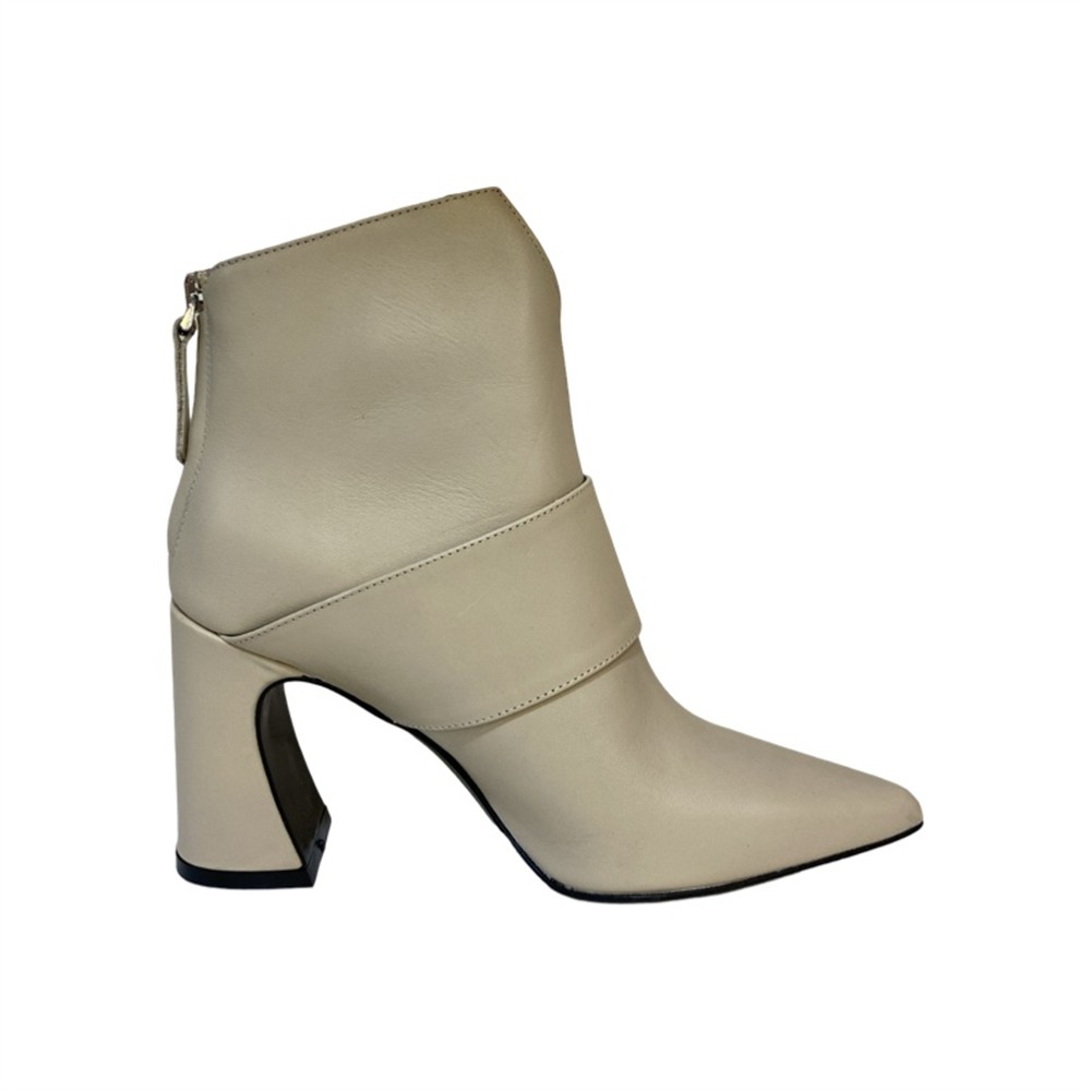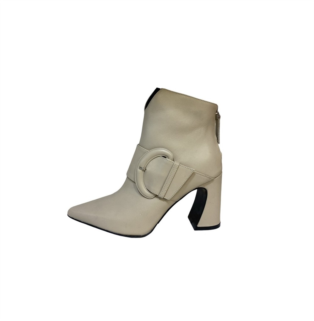278870 Tronchetto BEIGE a punta con fibbia in pelle e tacco 7 cm