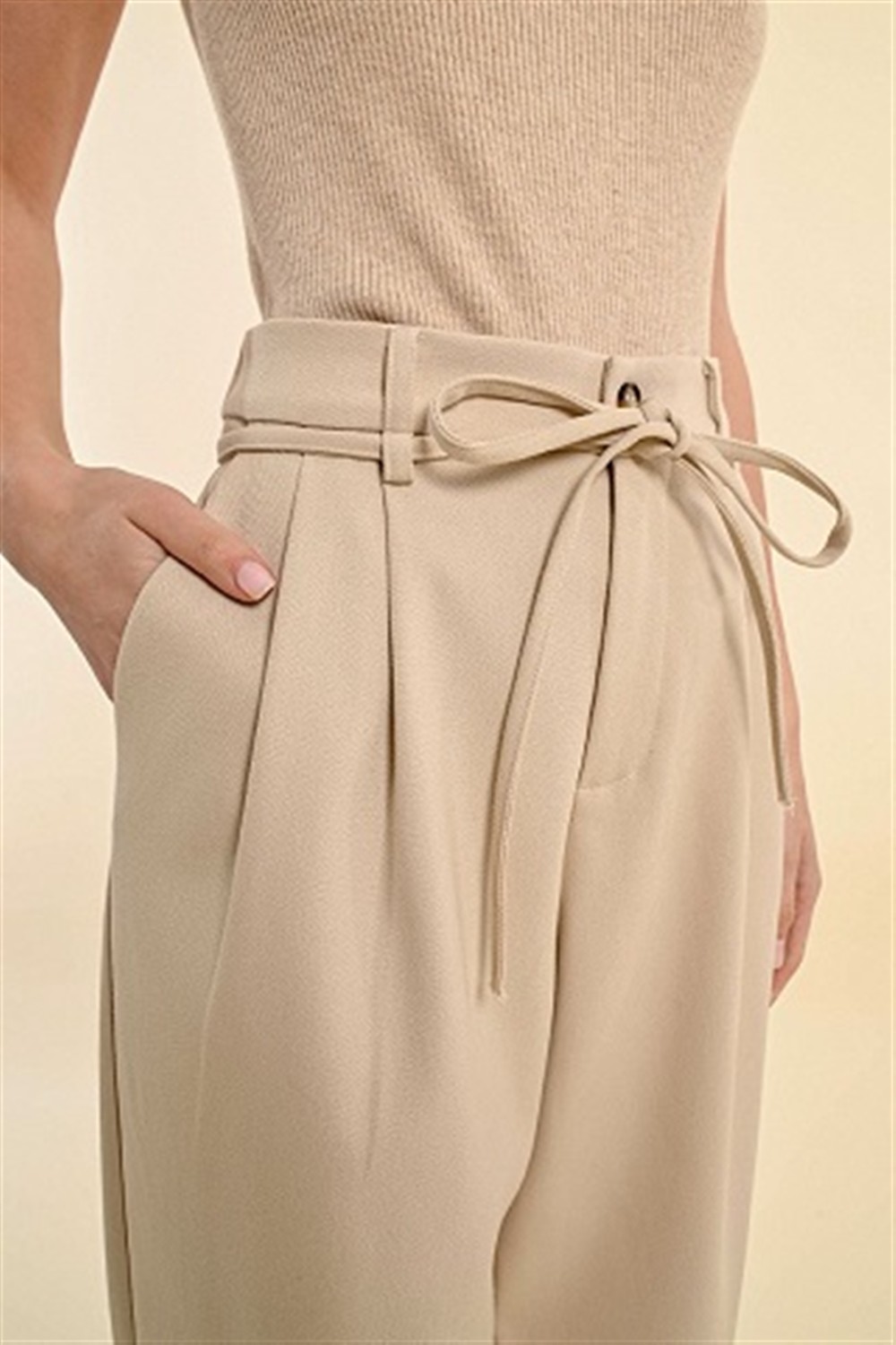 Pantalone con pences e cintina in tessuto