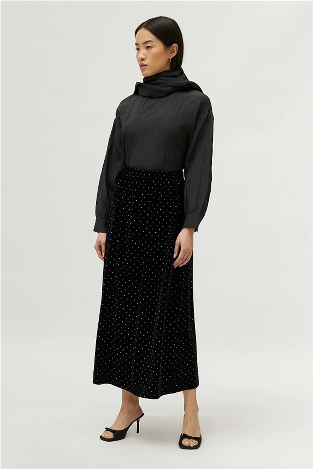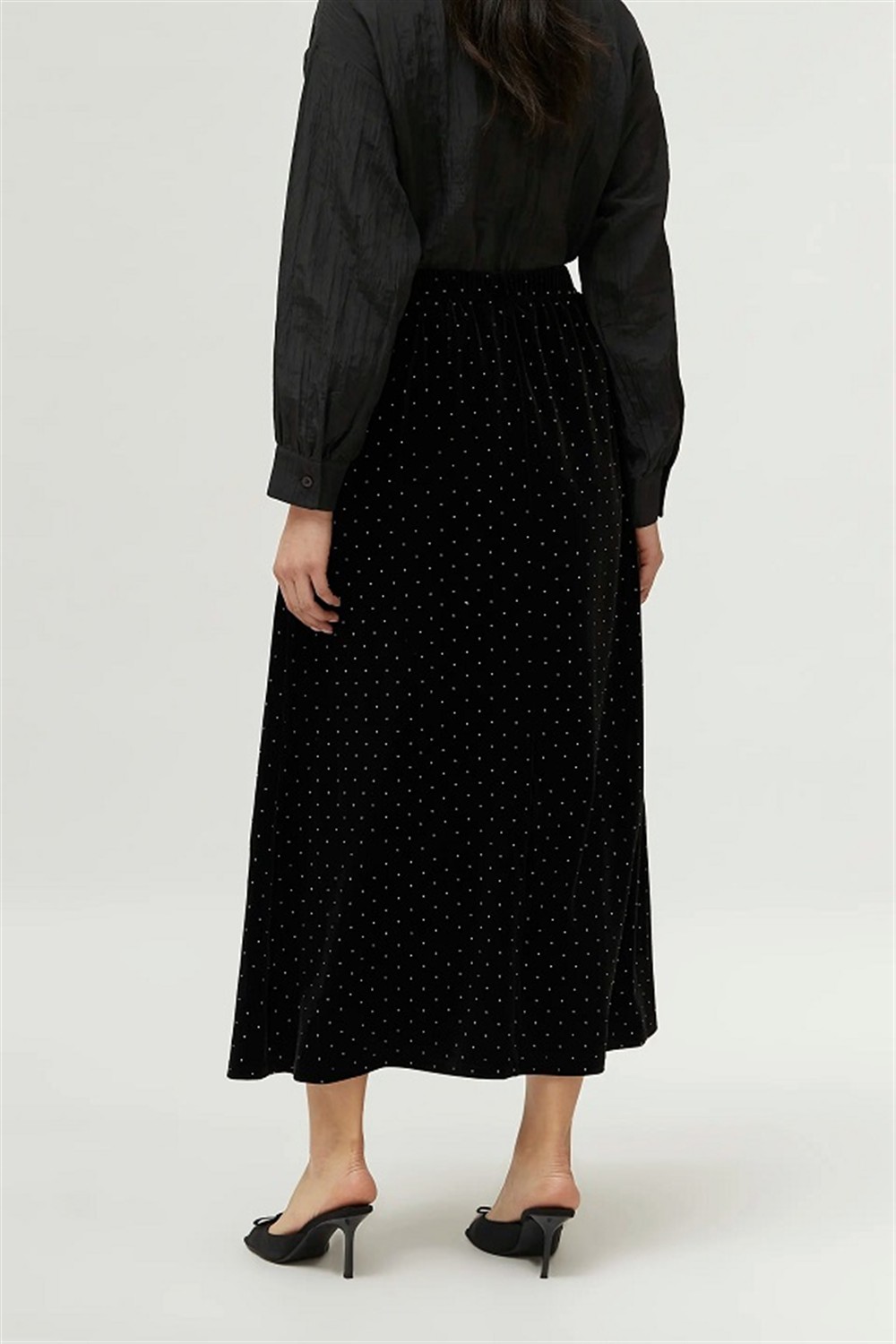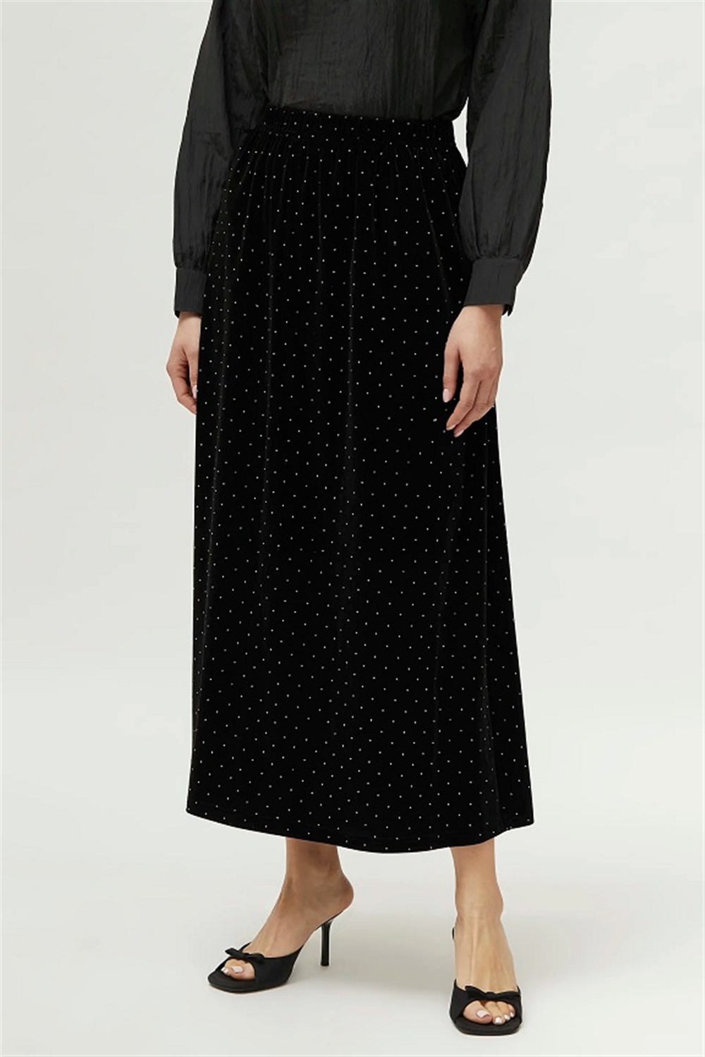 Gonna lunga in velluto con strass ed elastico in vita